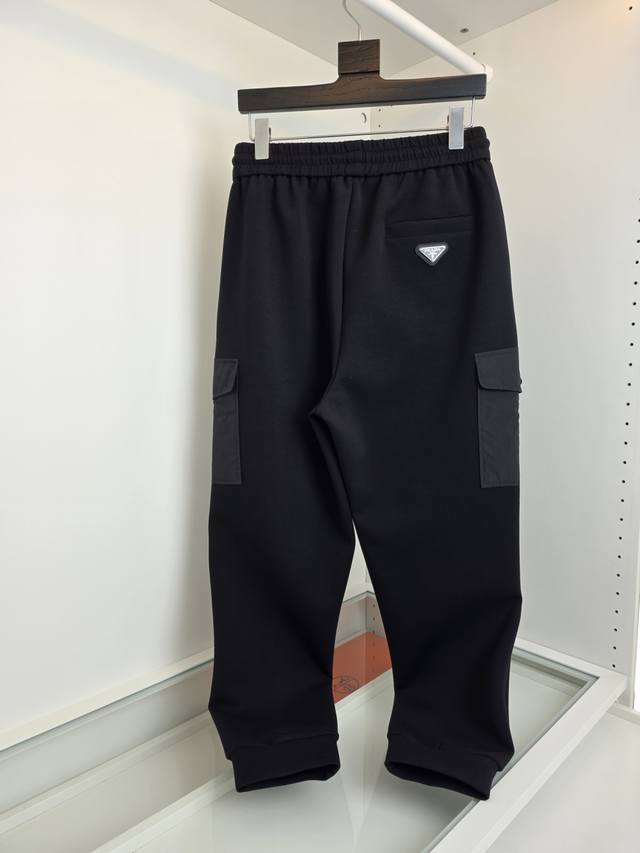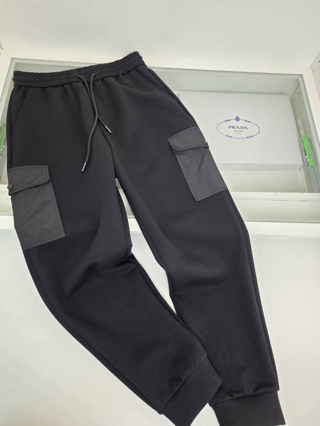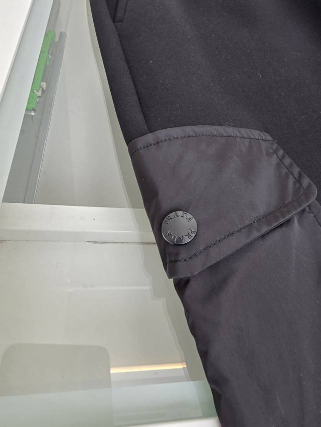 pr*Da's 2025 Fall/Winter collection is now on sale! These raw nylon-and-modal air layer casual sweatpants come with a matching top. Paired with a classic elastic waistband, they feature nylon work pockets on both sides for a practical, contemporary design. Zippered side pockets and a fitted silhouette are included. The fabric is constructed from a modal air layer, known as a breathable air layer. The structure utilizes an inner, middle, and outer fabric structure, creating a layer of air within the fabric. This creates a lofty, stretchy feel, and a static air layer for warmth and wrinkle resistance. They're soft, comfortable, and breathable, creating a smooth, warm feel. The overall structure is well-structured, resulting in a stylish, upright look. In perfect condition. Color: Black. Sizes: M-2Xl. Try on sizes 172-148. Size L is suitable.