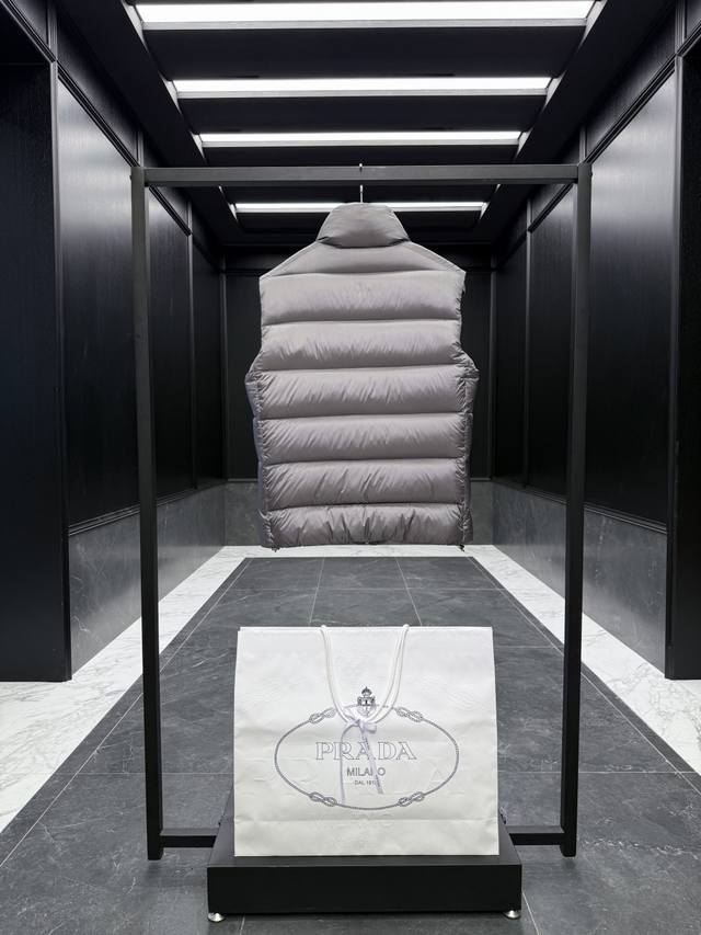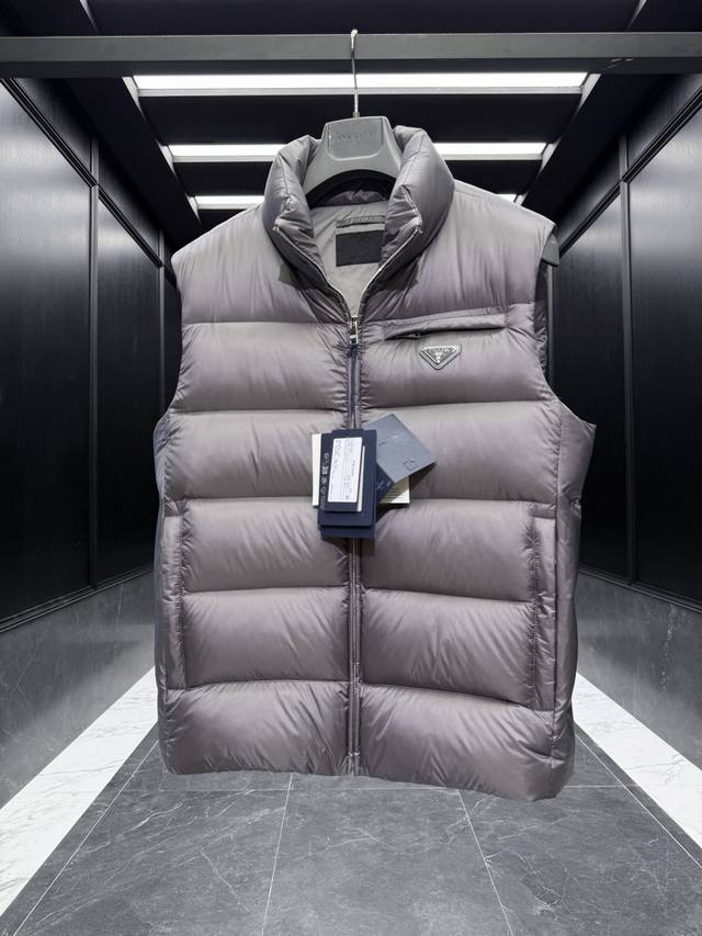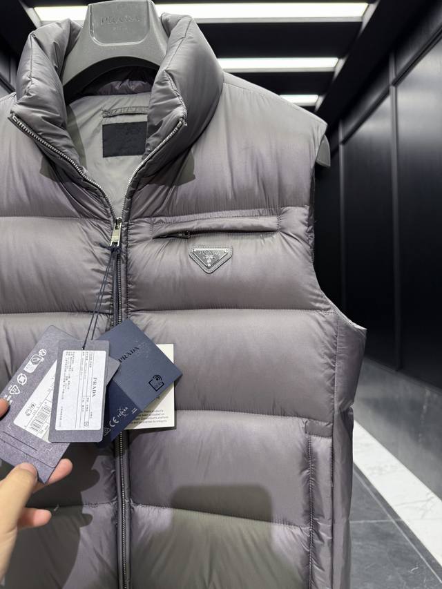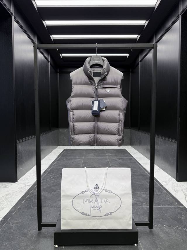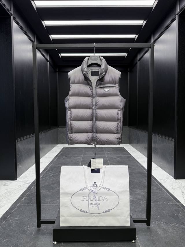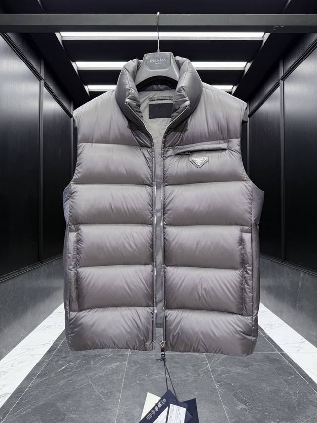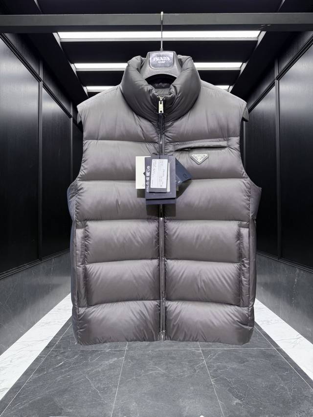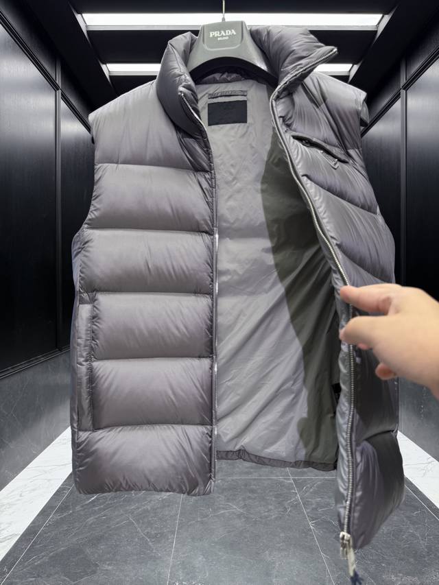 Premium down Prada 129 classic thickened down vest. Soft nylon fabric for ultimate comfort and lightweight comfort.