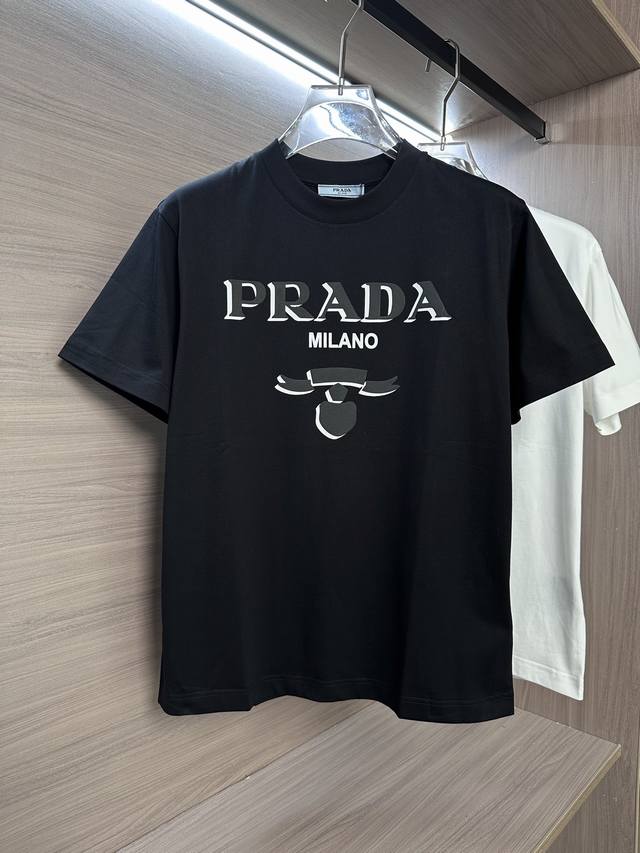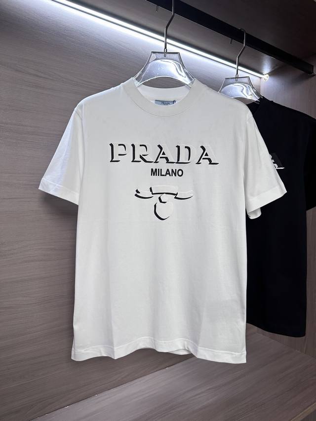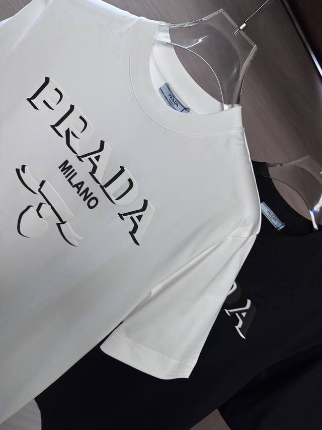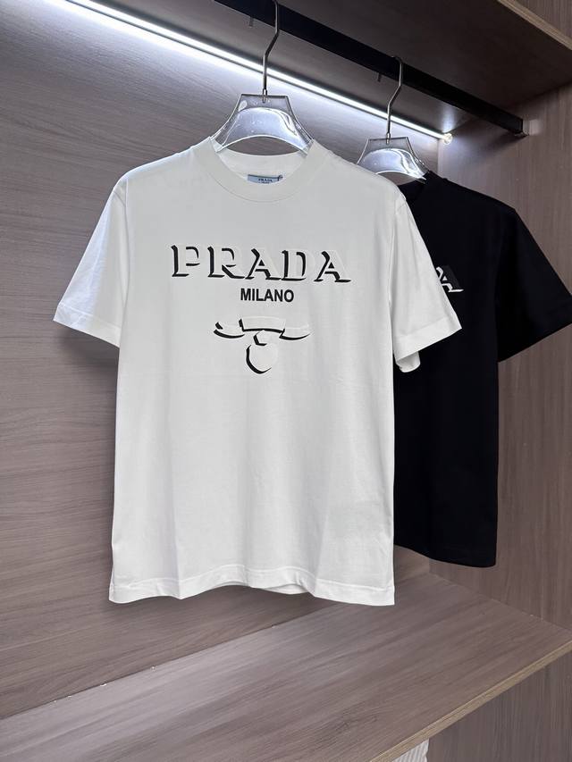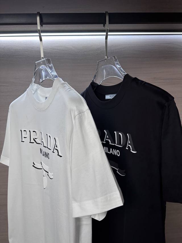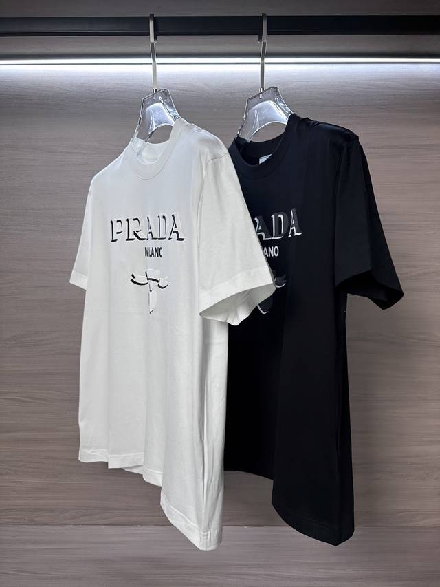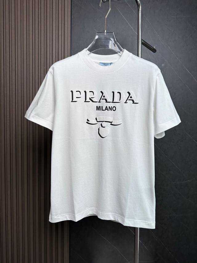 Pujia 25Ss new spring and summer round neck short sleeves, customized pure cotton material, comfortable and breathable, heavy letter pattern design on the chest, fashionable and versatile, casual item