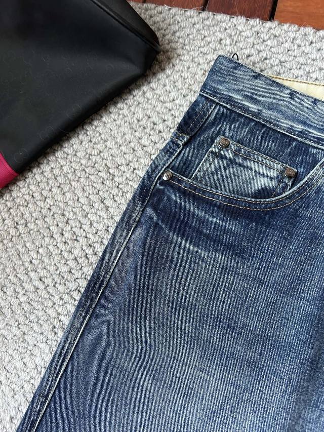 Pula's men's denim casual jeans, the official lookbook poster style! Made from premium imported raw denim fabric, these jeans are made from 13oz Okayama, Japan. They're washed with a heavy, eco-friendly plant enzyme process, resulting in a subtle vintage hue that's beautiful and perfect for fall and winter. The washed fabric is soft and delicate, yet with a strong texture and a slight stretch, providing exceptional comfort. No other detailing mars the denim, preserving its purest quality. The impeccable, refined details throughout are exquisitely crafted, with a new leather waistband highlighting the brand's signature design. The hardware, label, and stitching all showcase meticulous craftsmanship. The perfectly tailored silhouette offers a flattering, hip-lifting effect, making them a versatile and versatile pair for any wardrobe. They're a must-have for quality-conscious and 1V-obsessed individuals!
