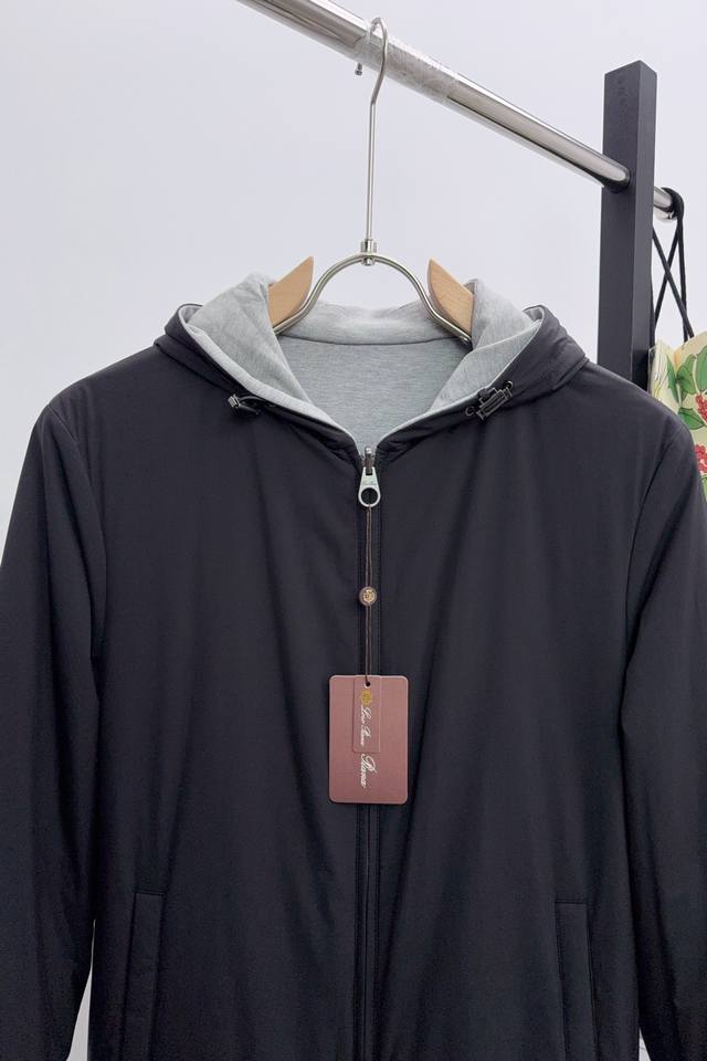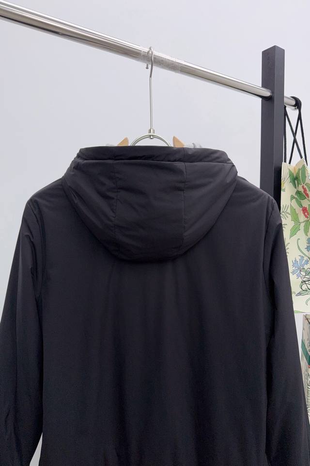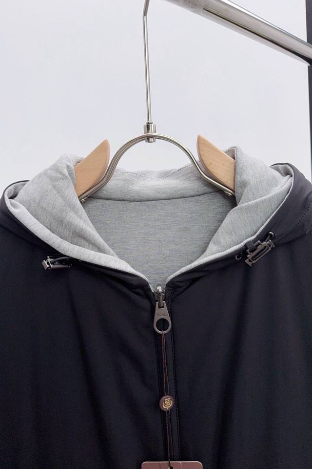 Q024 Lp Loro Piana's 2025 new hoodie. This Loro Piana hoodie features no extravagant embellishments, but a tailored design grounded in centuries of craftsmanship, perfectly fitting the body. It's stylish enough for business and relaxed enough for casual wear. The hoodie boasts a casual feel, with an adjustable drawstring for windproofing and a trendy design perfect for both street and outdoor styles. One side is perfect for outdoor activities, while the other is simple and casual, perfect for everyday wardrobes. The brand's signature embroidered logo is presented in a compact, reversible design, maintaining its reversible simplicity while highlighting the brand's identity and enhancing its distinctiveness. The gently gathered hem and cuffs provide windproofing in spring and autumn, while locking in warmth in winter, making it suitable for fluctuating temperatures and outdoor activities, making it versatile and adaptable to a wide range of weather conditions. Furthermore, the elasticated design helps maintain the shape, preventing movement during light activities like running and hiking, expanding the range of wearable options.