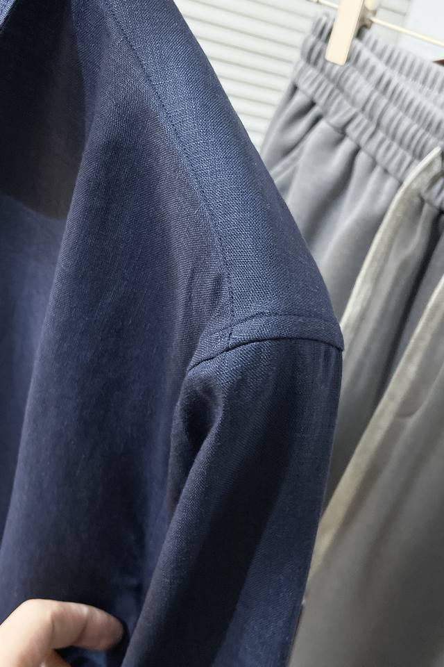 Q154 Kt Kiton. Linen, the answer to lazy chic, Kiton, a hot luxury brand. Breathable linen and relaxed tailoring use natural texture to create an effortless sense of luxury. The loose cut hides fat and makes you look thinner, accommodating all stretching postures. It's casual at home, and when paired with a tote bag, it instantly becomes a Citywalk photo artifact.