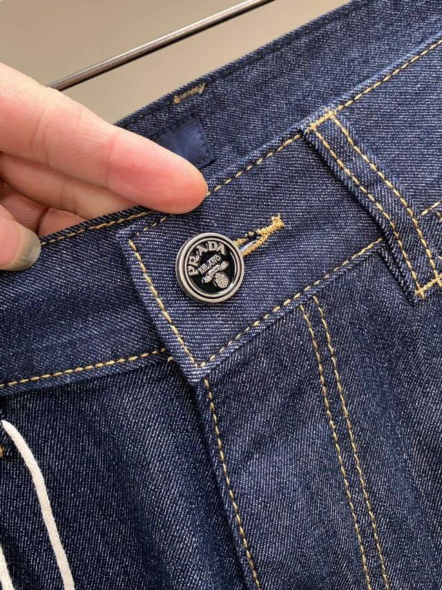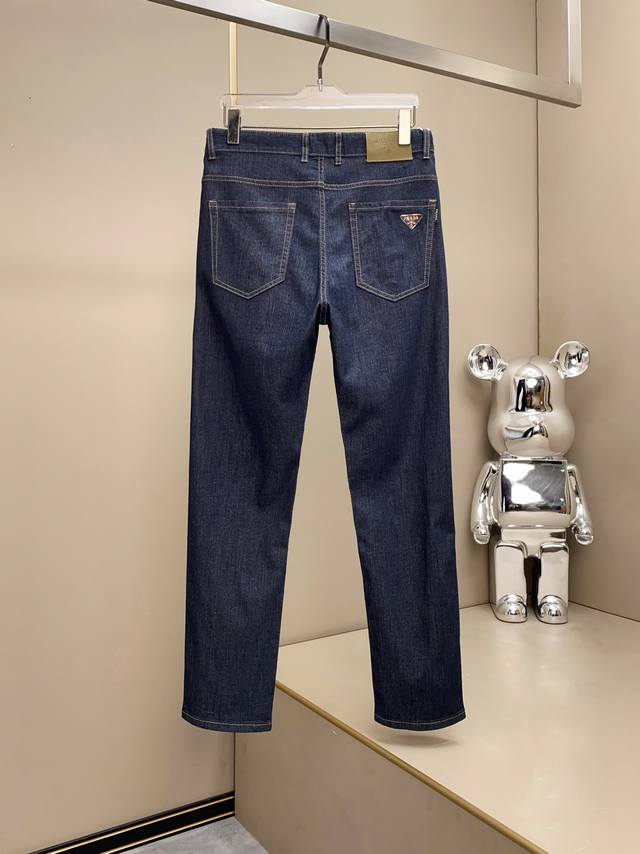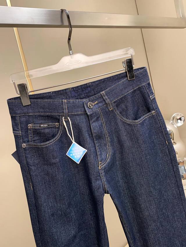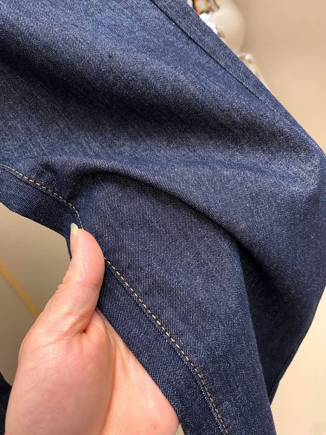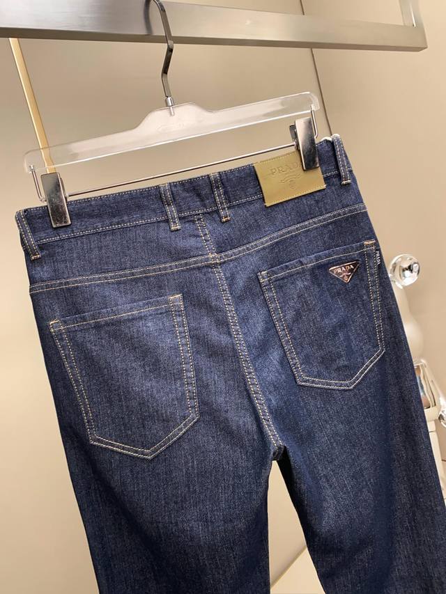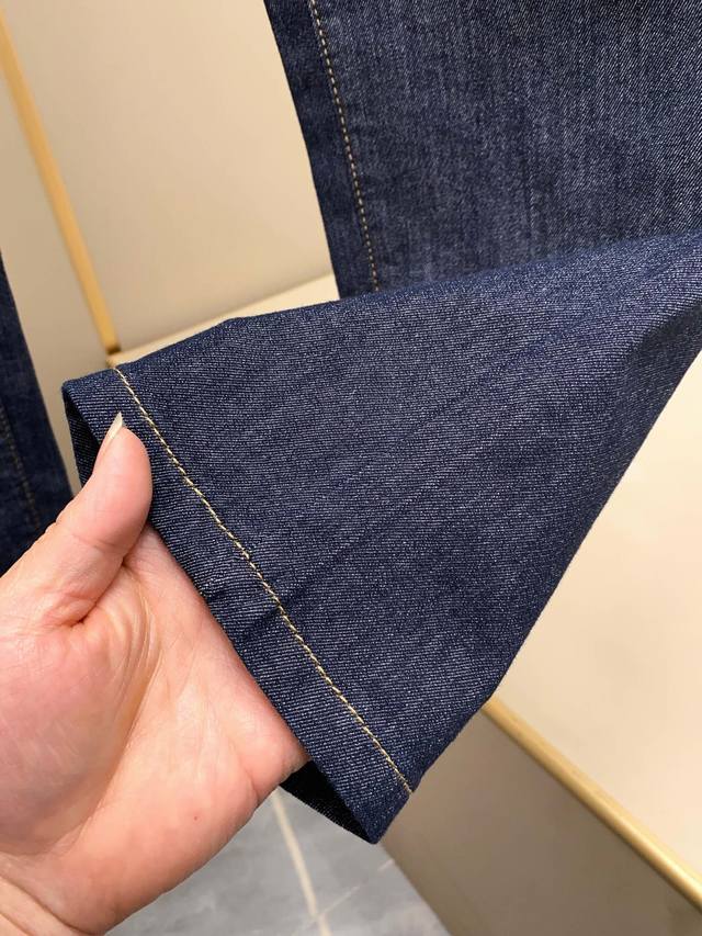 Ra25Ss Spring/Summer New Casual Five-Pocket Men's Jeans! Features a triangular logo print on the back pocket, representing a business casual retro style in dark blue! DDD's annual triangular logo series is a must-have, always a bestseller, with many loyal customers purchasing a pair every year. The overall simple design makes it easy to pair with either T-shirts or shirts. DDD's meticulous craftsmanship creates an exceptional effect. The overall workmanship of the jeans is very refined. The five-pocket series is a common design for jeans, giving a unique feel, combining a business attitude with a touch of casualness. All hardware and accessories are from authorized retailers. The back pocket features a top-grain leather label with the classic triangular logo print, perfectly continuing the tradition. The three-dimensional cut flatters the stomach and lifts the buttocks, providing a slightly slimmer fit, allowing you to move with more confidence and poise! Color: Dark Blue Sizes: 30-38 Size Reference: Size 31: Waist 82cm, Hips 106cm, Thigh 58cm, Length 107cm, Leg Opening 36cm