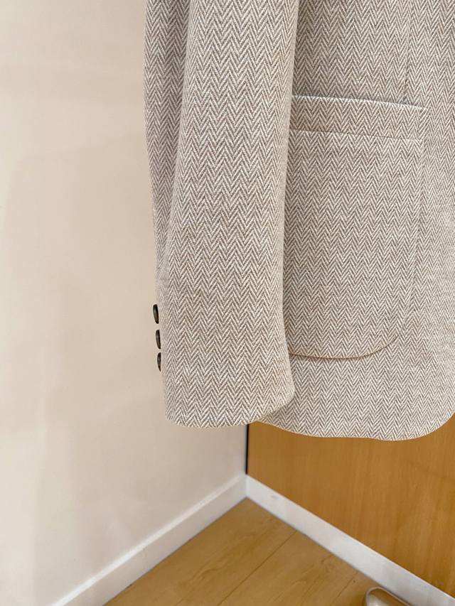 Buttons: The buttons are in the same color as the jacket, with a smooth surface and four-hole design, blending in with the overall style and creating a low-key yet refined look. The