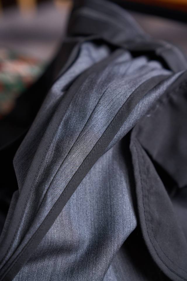 's peaked lapel is the finishing touch, with a subtle, vintage crow's feet pattern that's unique and understated, showcasing the wearer's discerning taste and bringing a touch of classic elegance to a modern setting. The two-button design is simple and capable, cleverly modifying the body proportions, adapting to various body shapes, and easily creating an elegant and atmospheric visual effect.