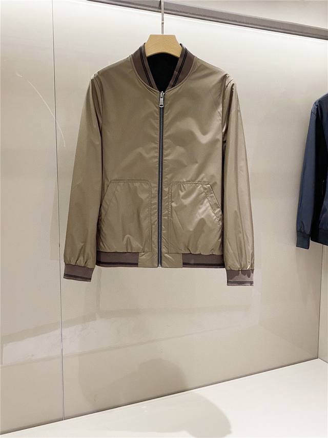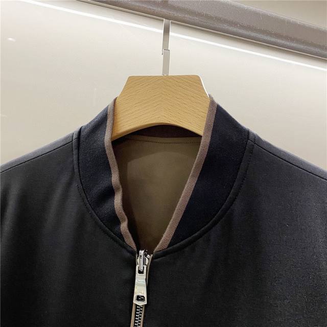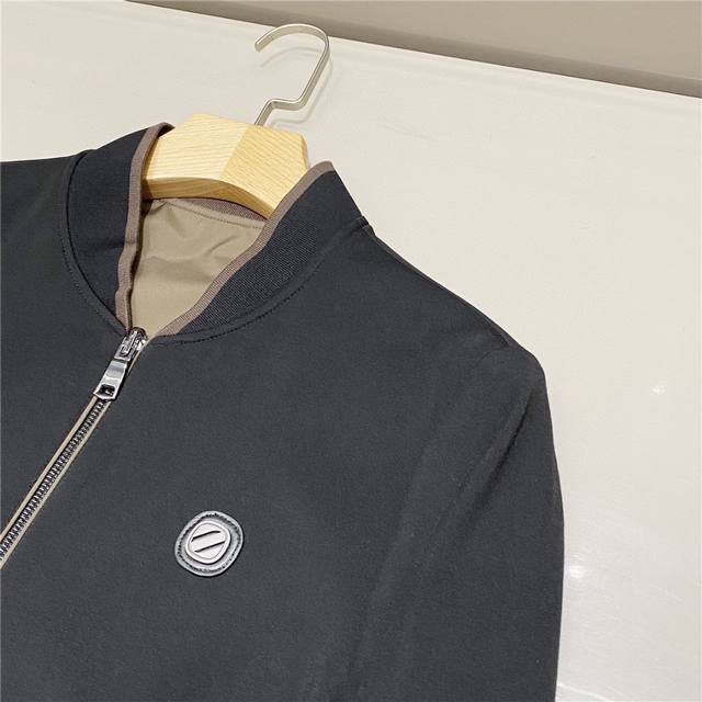 Reversible, this Z-brand 2025 Fall/Winter men's collarless jacket is a newly upgraded model, a staple in the brand's window display collection. It features a classic solid color design and a textured fabric. The fabric feels soft and the loose silhouette exudes a casual, relaxed feel. The classic, simple design enhances its recognition. Details include a hood, front zipper, long sleeves, side zipper pockets, buckle details, and German-imported hemming with high-density double-stranded yarn for a truly exceptional finish. This jacket is incredibly flattering, and the iconic double-Z plaid is a retro and stylish statement piece that's instantly recognizable. The jacket's tailoring is tailored to meet the needs of urban leisure, with exquisite hardware details and quality guaranteed for export orders. This is a must-have.
