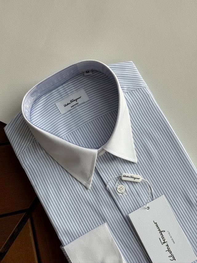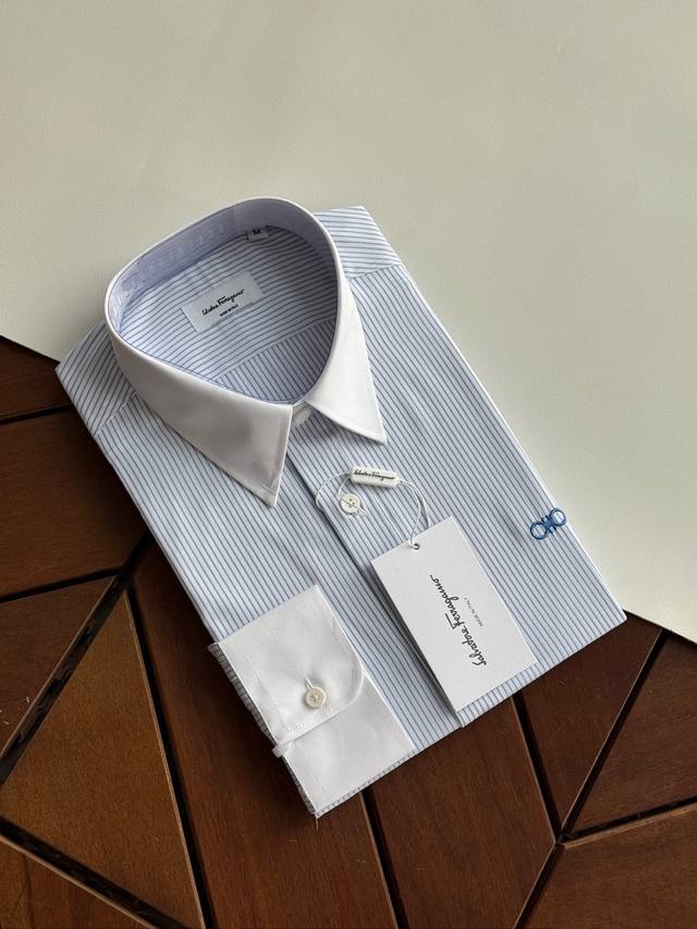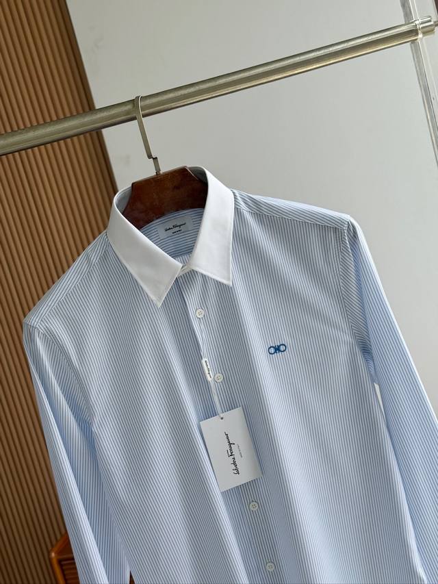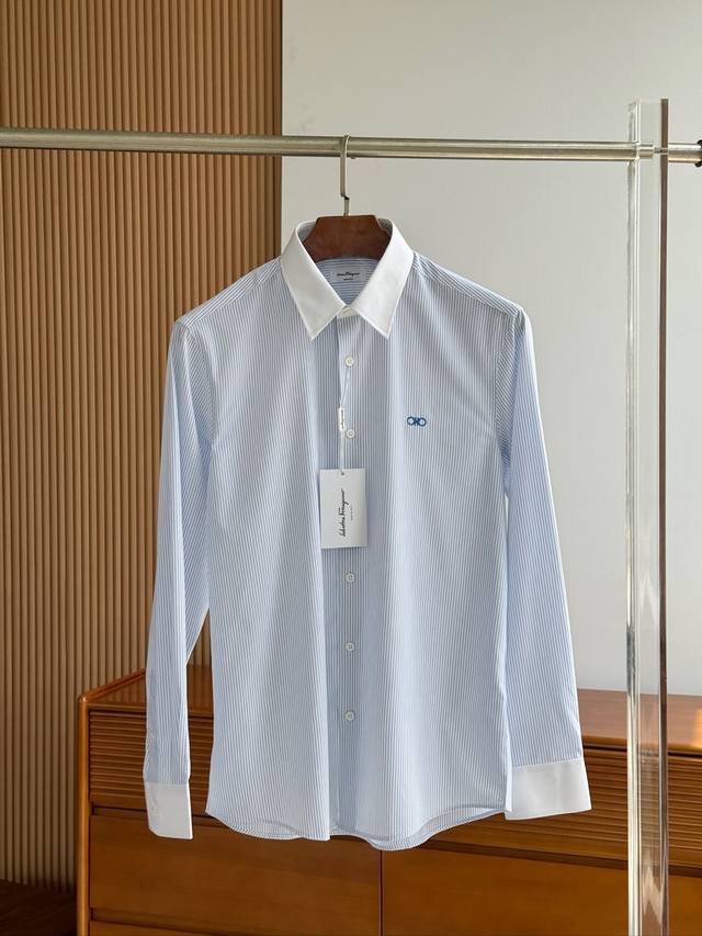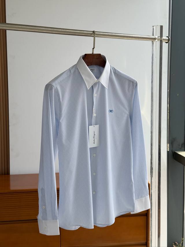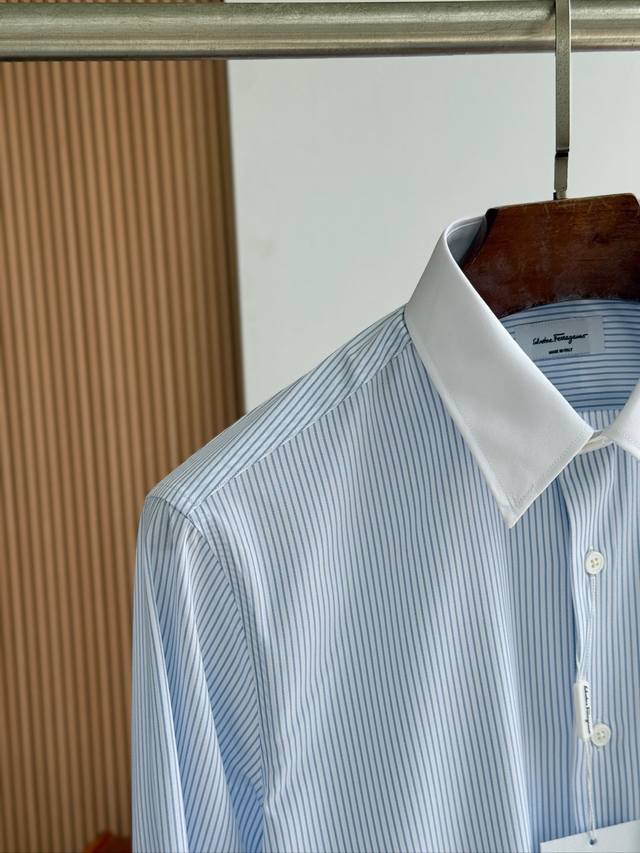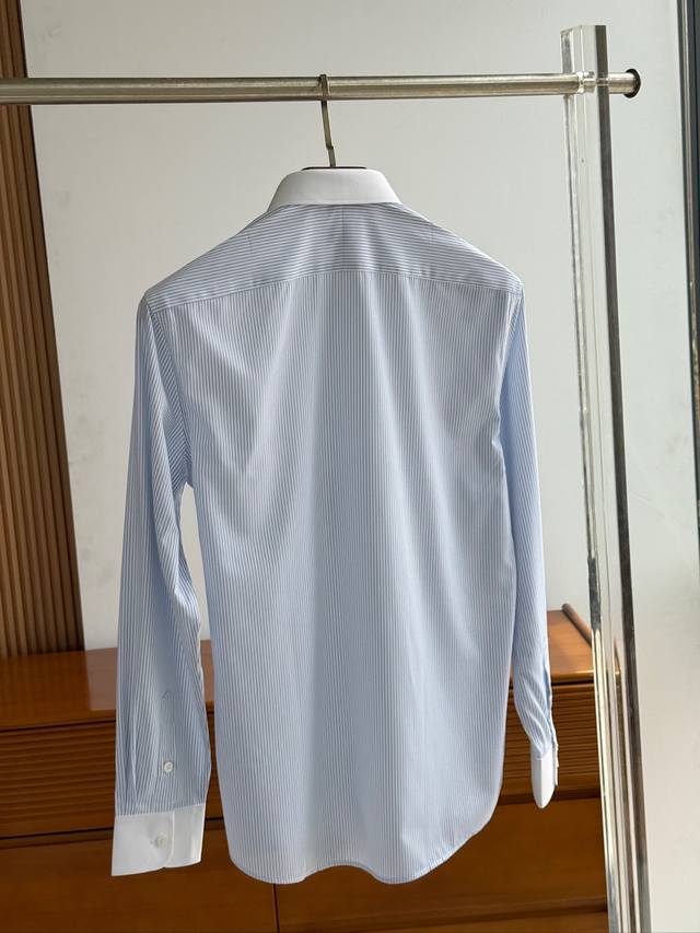 Sf Fila Men's Business Casual Fashion Striped Fabric Shirt, Priest Collar Long-Sleeve Shirt, from a trading company, export order to Italy, latest Platinum-level premium item!! This shirt is perfect in design, fabric, craftsmanship, details, and appearance. Buttonholes, buttoning, and ironing are all done independently by a single worker, strictly adhering to Italian craftsmanship standards