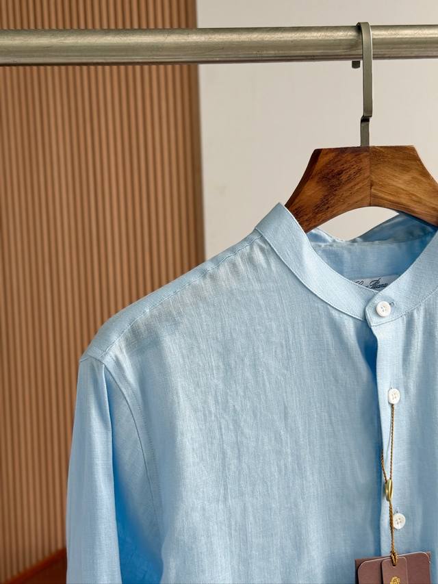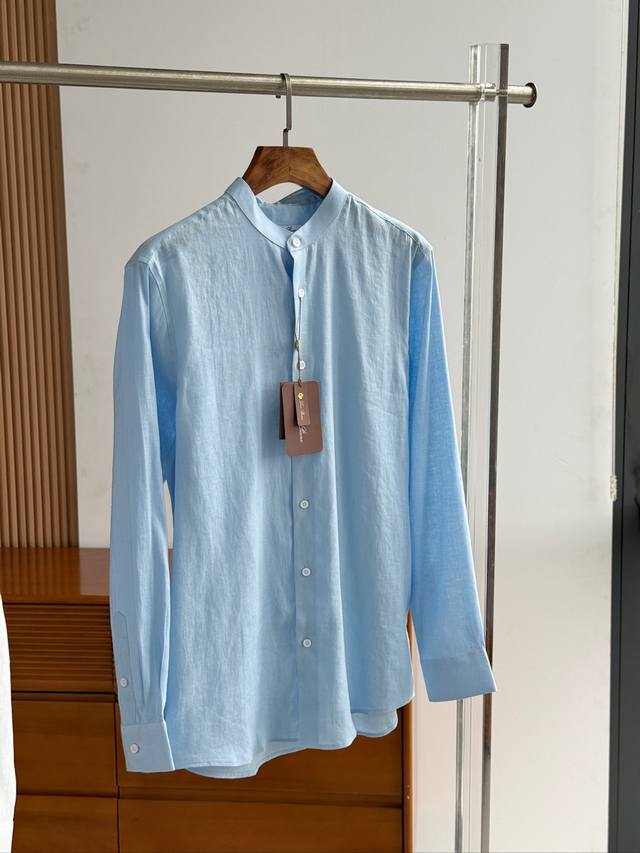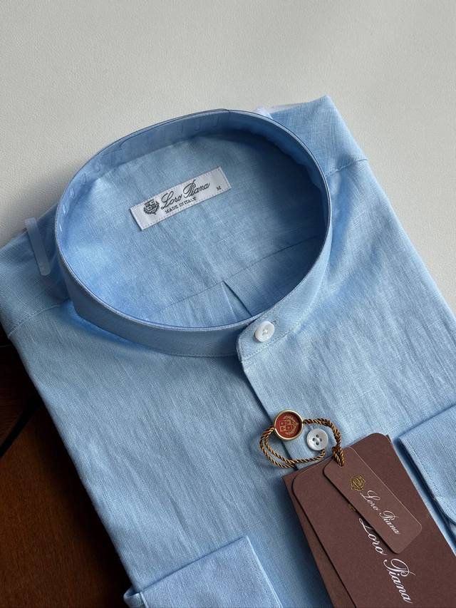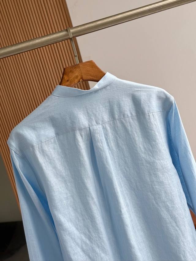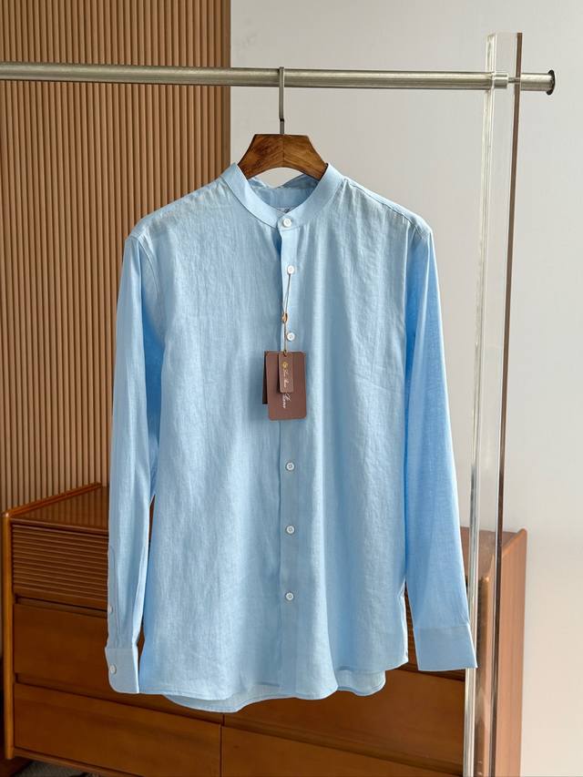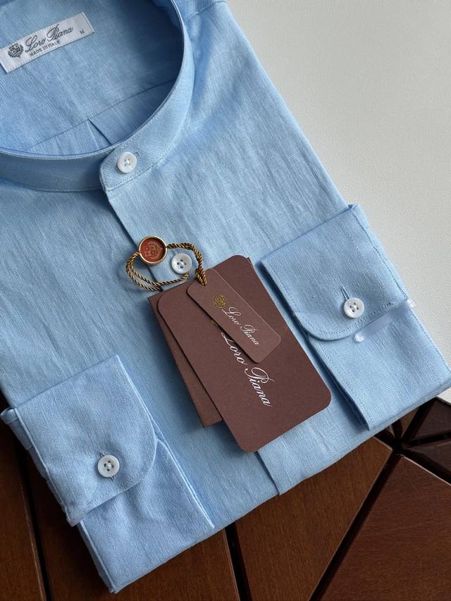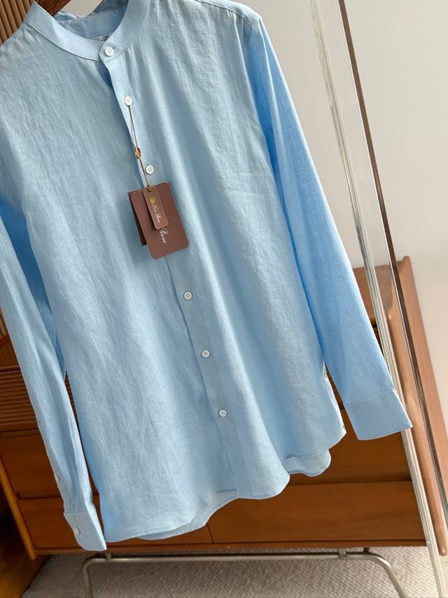 Sky blue. Close-up!!! An epic linen shirt, an exclusive LP creation, featuring a retro Chinese-style stand-up collar... This authentic 100% linen shirt, with its unique fabric properties and casual, natural style, has become an essential fashion item this spring and summer. This classic casual shirt features a clean, simple, and timeless design, making it a versatile style that can be easily transformed into a stylish outfit for everyday streetwear. This shirt is made from custom-woven 100% linen fabric. This highly absorbent and breathable fabric is comfortable next to the skin, keeping you warm and comfortable. It can be worn alone or as a layer, and the loose fit creates a simple, stylish, and elegant look. Linen shirts require special care when cleaning and caring for them. Avoid using harsh detergents or bleaching agents, as they can damage the fabric. Sizes: Smlxlxxl
