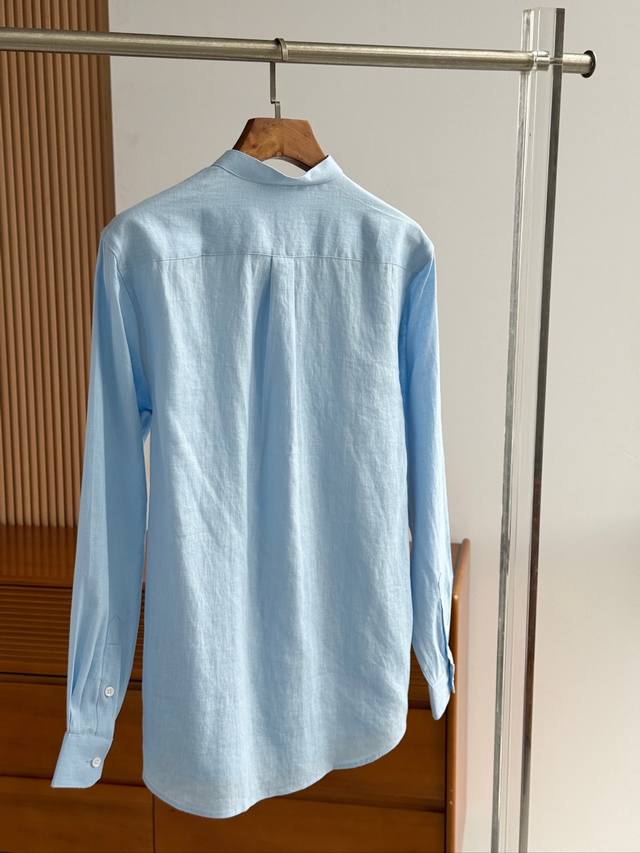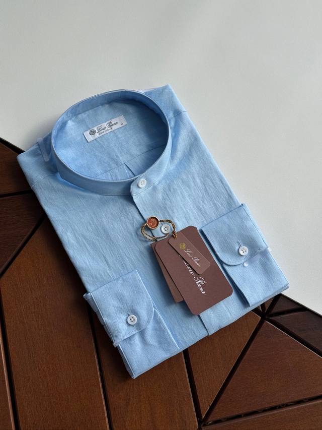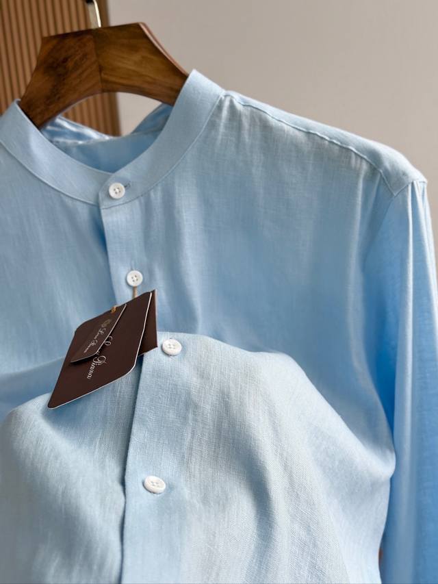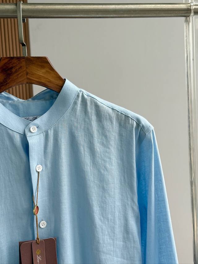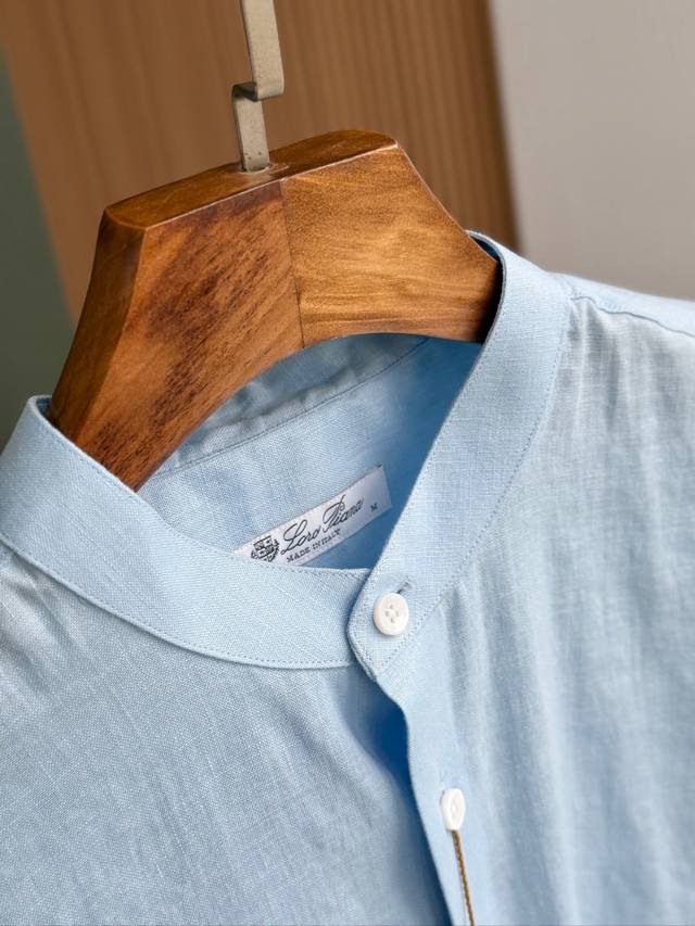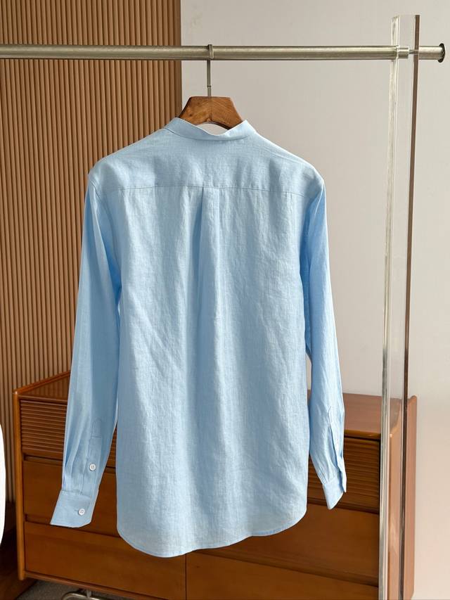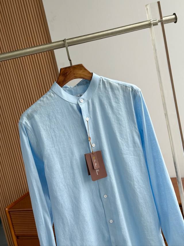 Sky blue. Close-up!!! An epic linen shirt, an exclusive LP creation, featuring a retro Chinese-style stand-up collar... This authentic 100% linen shirt, with its unique fabric properties and casual, natural style, has become an essential fashion item this spring and summer. This classic casual shirt features a clean, simple, and timeless design, making it a versatile style that can be easily transformed into a stylish outfit for everyday streetwear. This shirt is made from custom-woven 100% linen fabric. This highly absorbent and breathable fabric is comfortable next to the skin, keeping you warm and comfortable. It can be worn alone or as a layer, and the loose fit creates a simple, stylish, and elegant look. Linen shirts require special care when cleaning and caring for them. Avoid using harsh detergents or bleaching agents, as they can damage the fabric. Sizes: Smlxlxxl