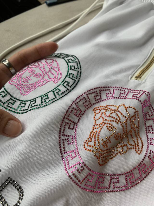 Versace's new fashion hybrid craftsmanship imported from South Korea. The 0.6-grain octagonal bricks gleam in the light, creating a luxurious yet elegant look. The embroidery creates a lifelike pattern, combining them into a high-end set design that allows for stress-free access without overthinking the matching accessories. The clutch design is available in two colors: black and white. Sizes M-3 Xl