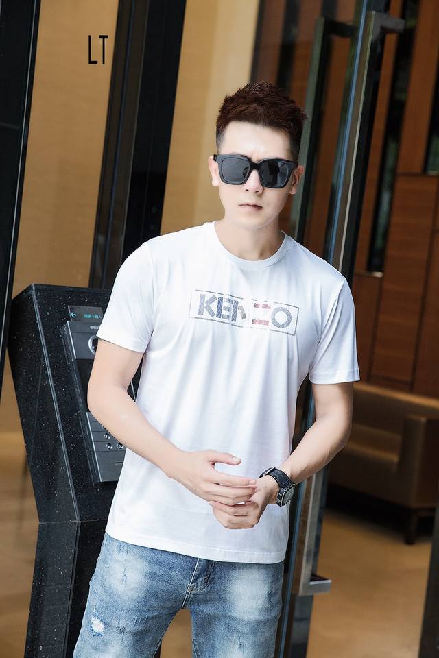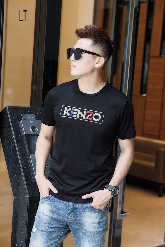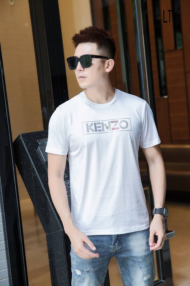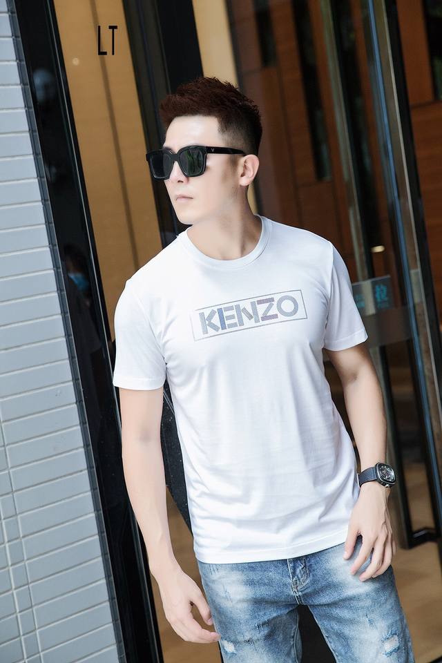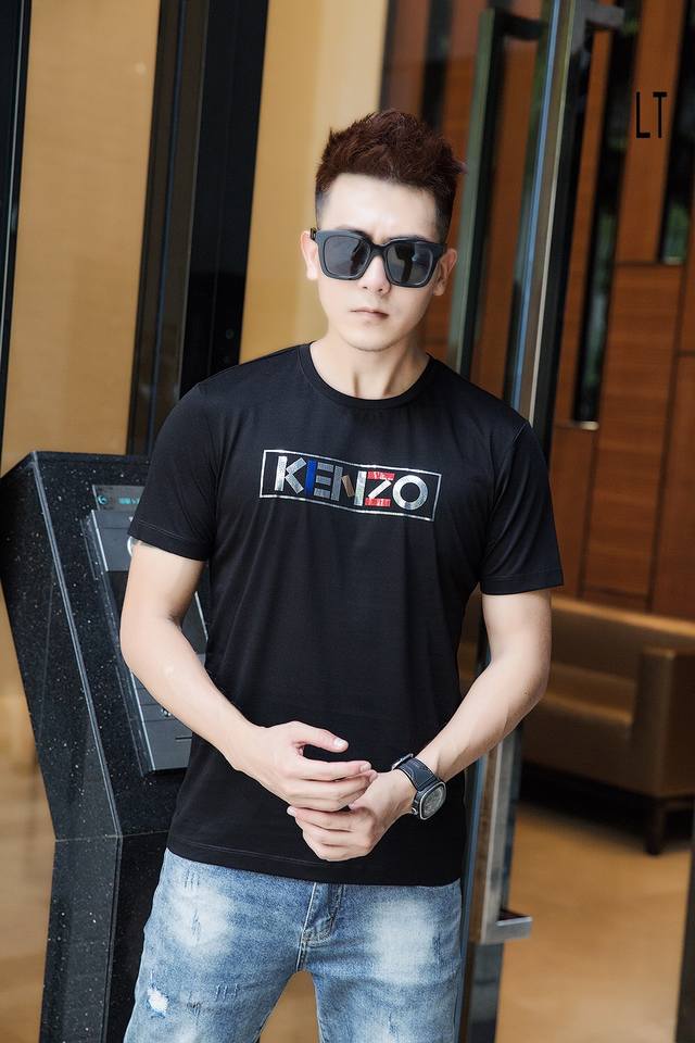 Special price Ken Ss, new spring and summer models, men's short-sleeved T-shirt, simple and clean, good fabric, the upper body feels very refreshing, whether worn inside or outside, it is very eye-catching, the fabric is made of high-count mercerized cotton, the surface has a gentle luster, silky and breathable, the upper body is very textured, collar label and water label are all in good condition, size: M-3Xl