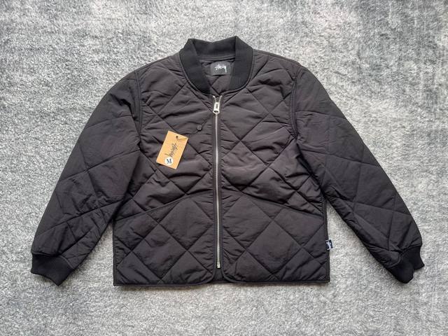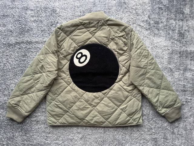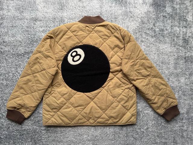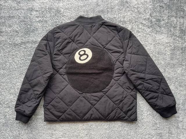 st331# Stussy Fw23 8 Ball Quilted Ted Liner Jacket. Stussy black eight-ball patc