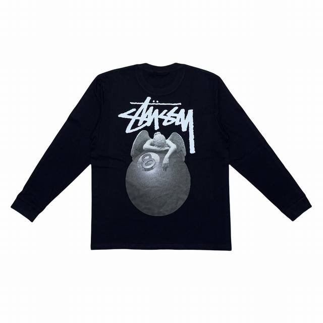st38# Stussy Fw22 8-ball series black 8 sculpture angel print long-sleeved T-shi