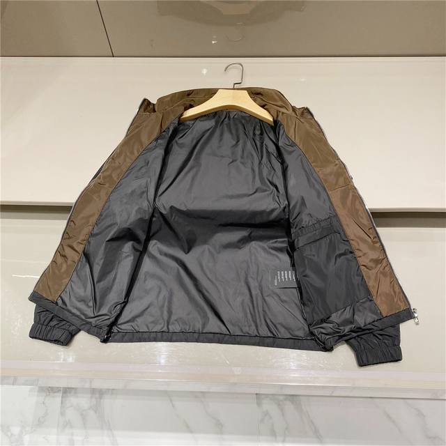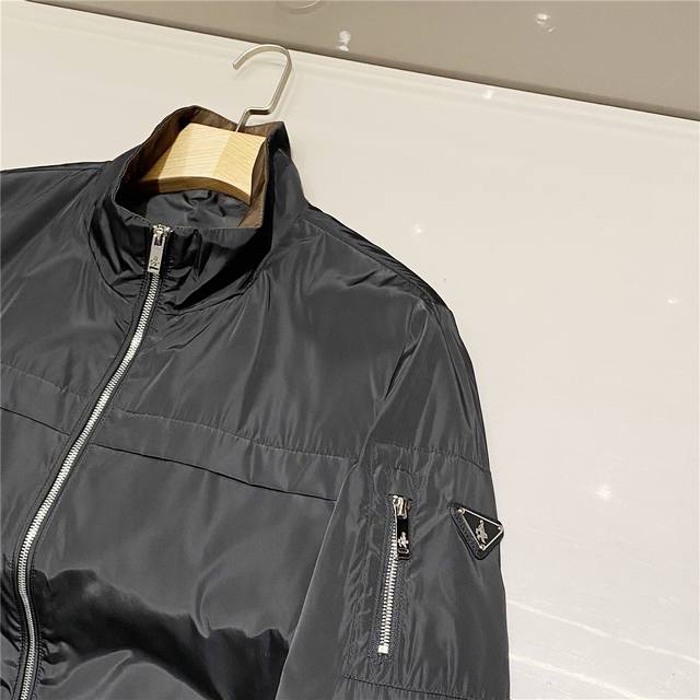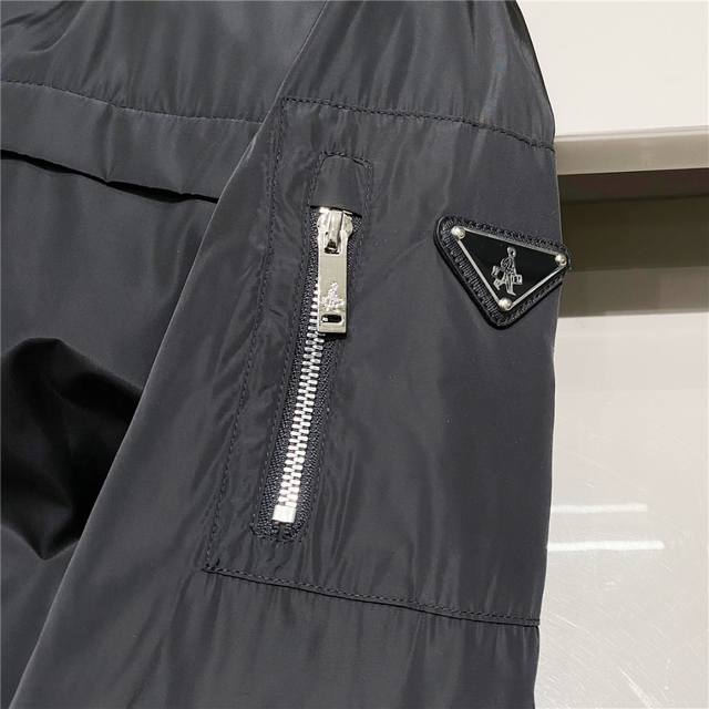 Stand-up collar series, the latest knitted nylon jacket from P-Jia for Fall/Winter 2025. This stylish men's casual stand-up collar jacket features a metal triangle logo embellishment! Available now through trading channels and on the official website, this jacket features a unique DuPont triple-proof fabric that provides both wind and rain protection in autumn and warmth in winter. Made of lightweight, comfortable, and skin-friendly technical nylon, it effectively blocks UV rays. The jacket looks stylish and sophisticated, feels fine and comfortable, and offers a light, breathable, and firm fit. Metal triangle logo patches at the cuffs perfectly highlight your luxurious status, making it instantly recognizable. The hooded design features a custom zipper and is embellished with the exquisite brand logo. The meticulous workmanship and clean seams ensure impeccable quality. A must-have for regular customers, this jacket is perfect for everyday outdoor wear, exercise, and fitness. Don't miss it!