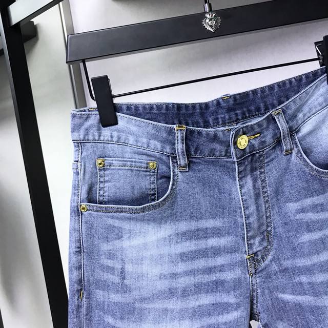 Stephen, original foreign trade denim shorts, thin 5-point shorts in stock, undeniably fine workmanship, logo design, copper hardware, washed, selected high-quality polyester fiber fabric, soft and delicate feel, a must-have item for summer, super handsome effect on the body, super realistic shooting, close-up contact texture! Sizes: 29-38.