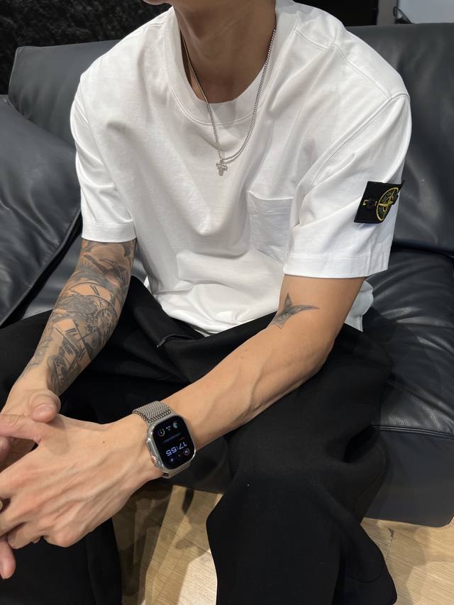 Stone Island's 2025 early autumn new style cotton short-sleeved T-shirt with cuff badge is here!