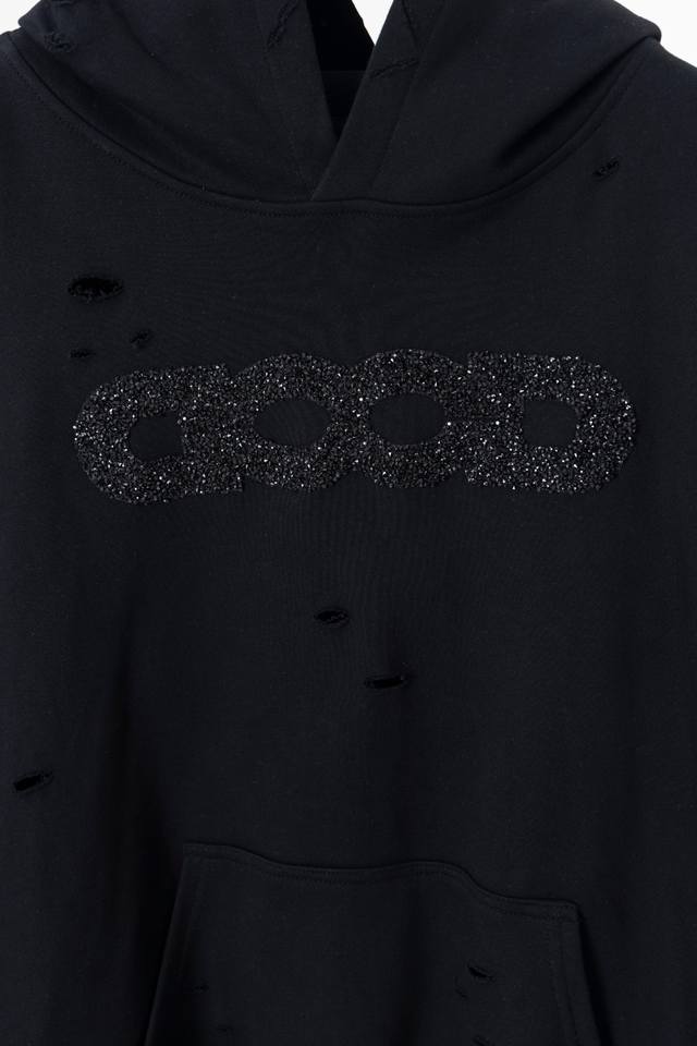Goodbrand rhinestone distressed long-sleeved hooded sweatshirt