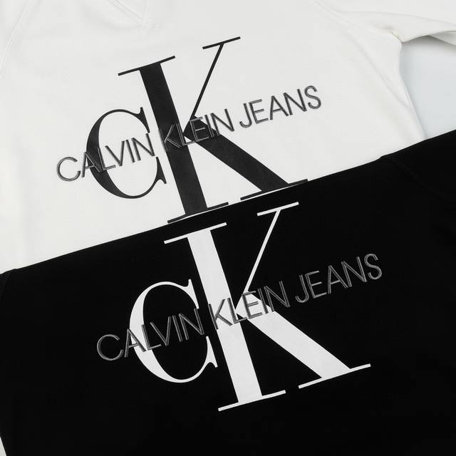 Calvin Kleinck round neck sweatshirt with embroidery and printing on the chest, precision embroidery on the arms