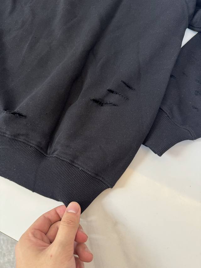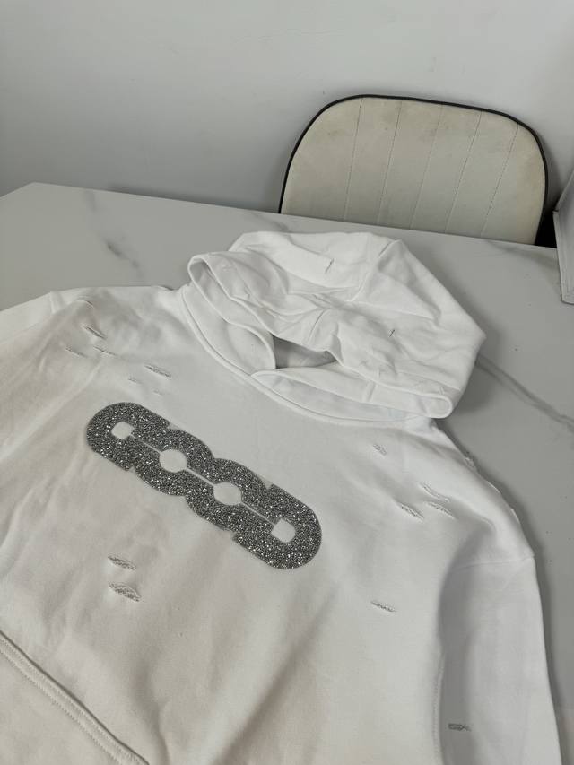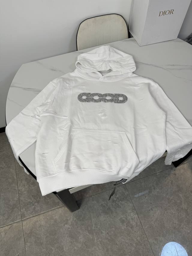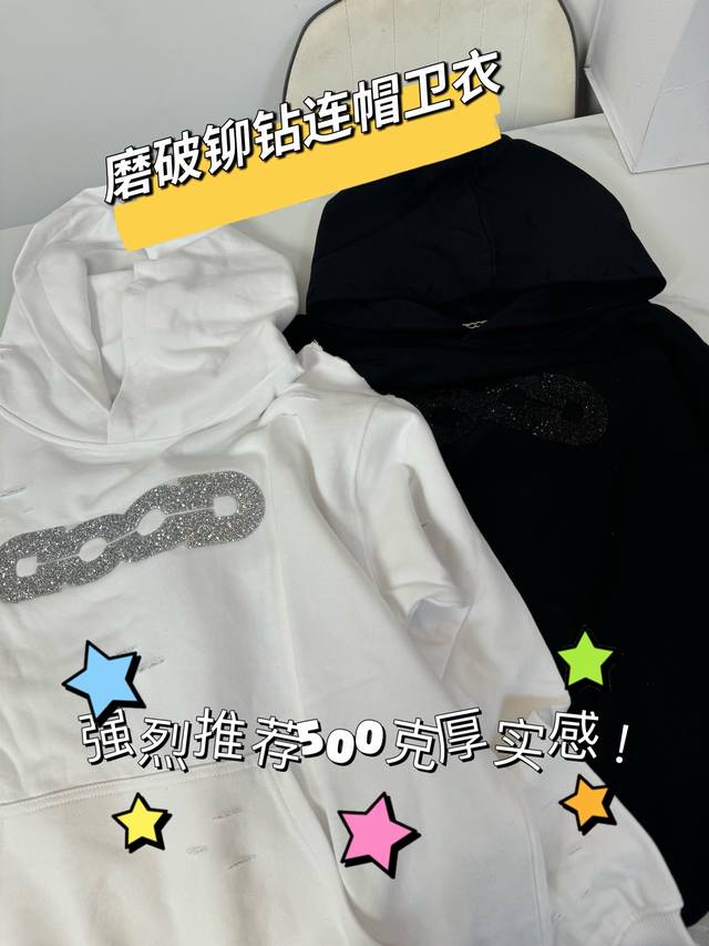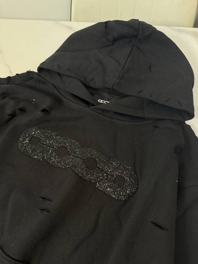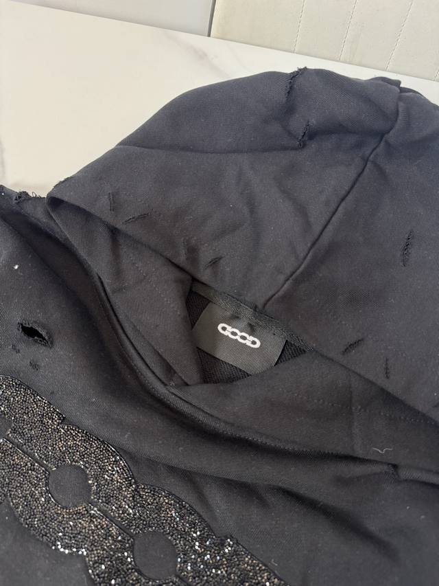 Goodbrand rhinestone-ripped long-sleeved hooded sweatshirt