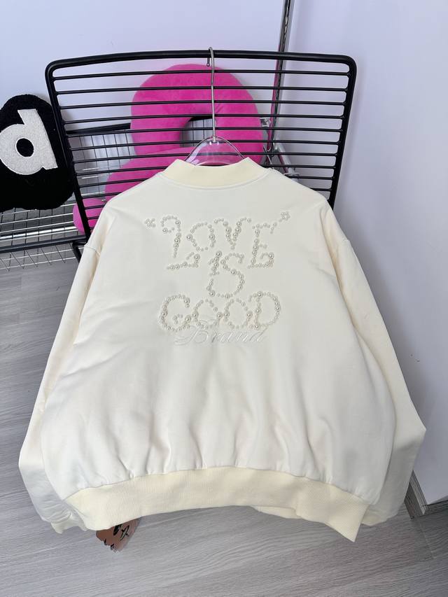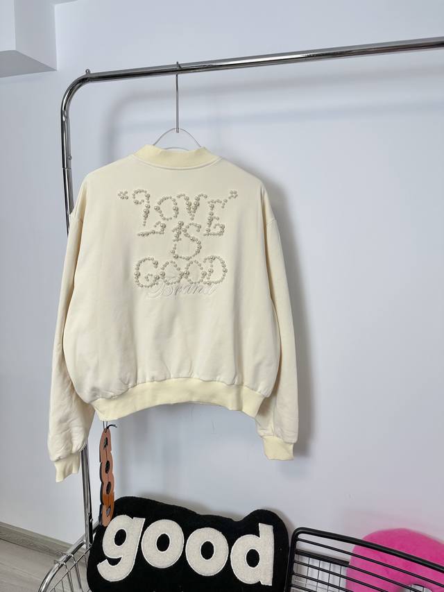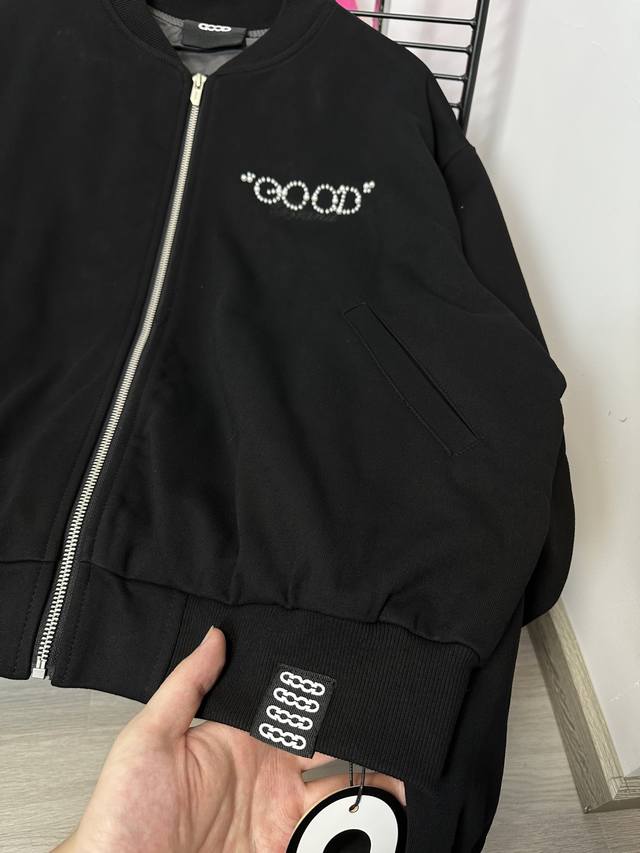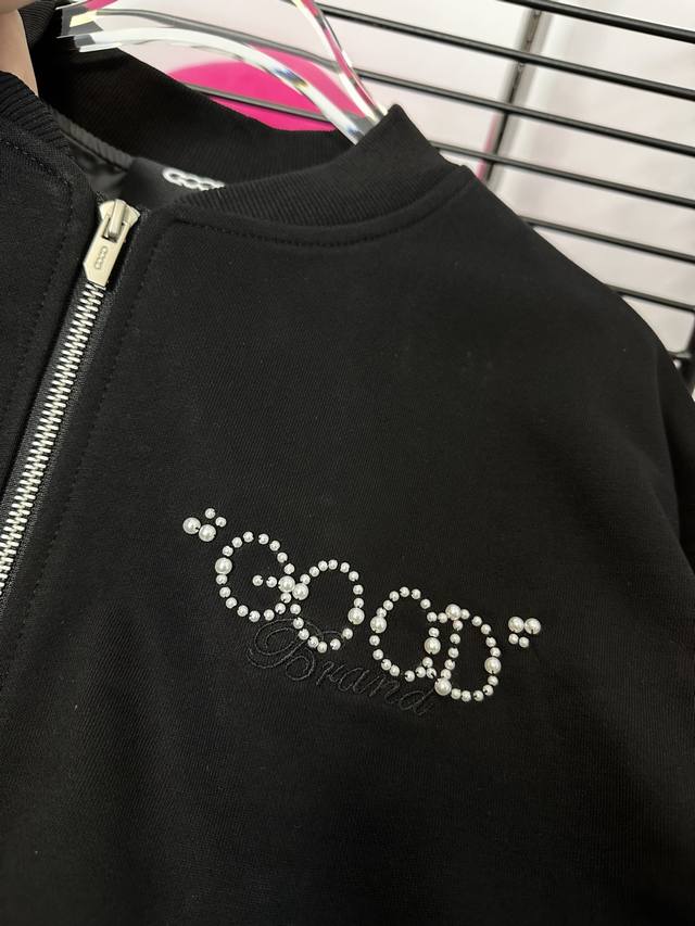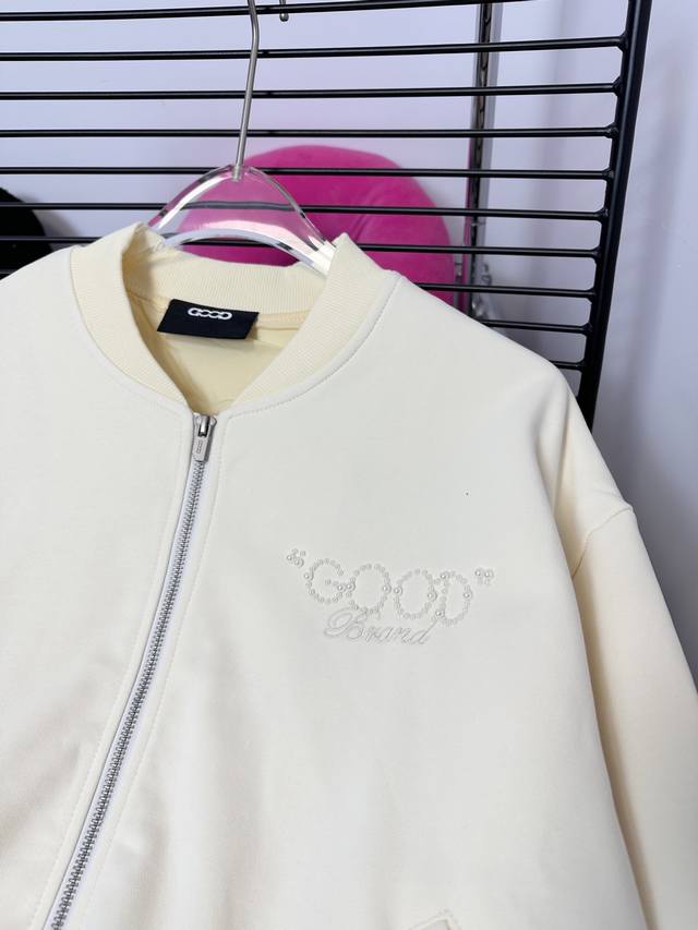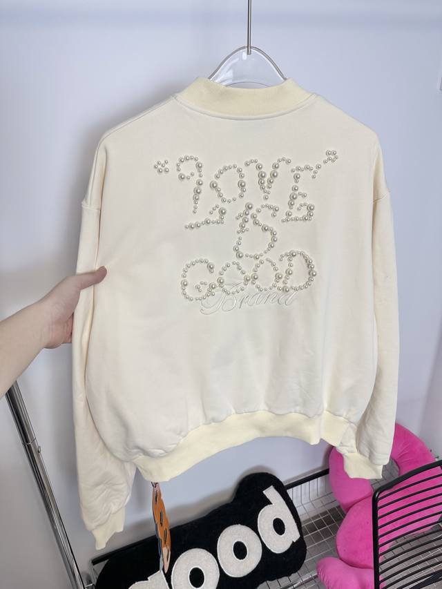 Goodbran pearl beaded slogan baseball jacket