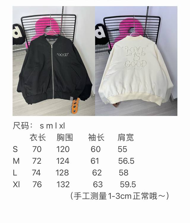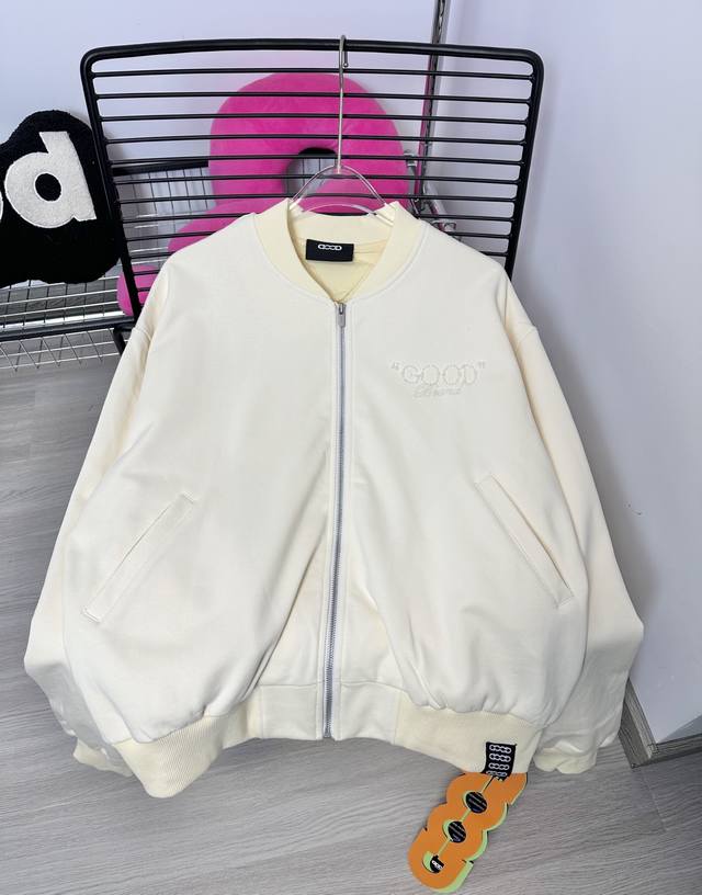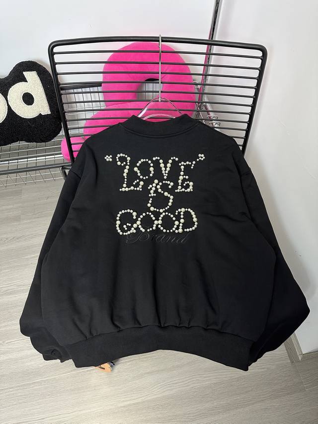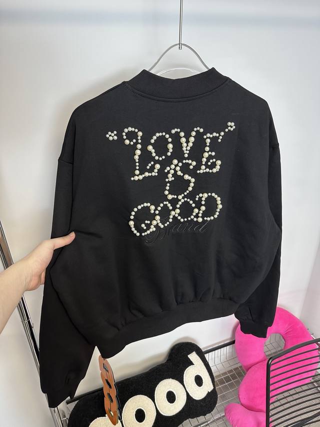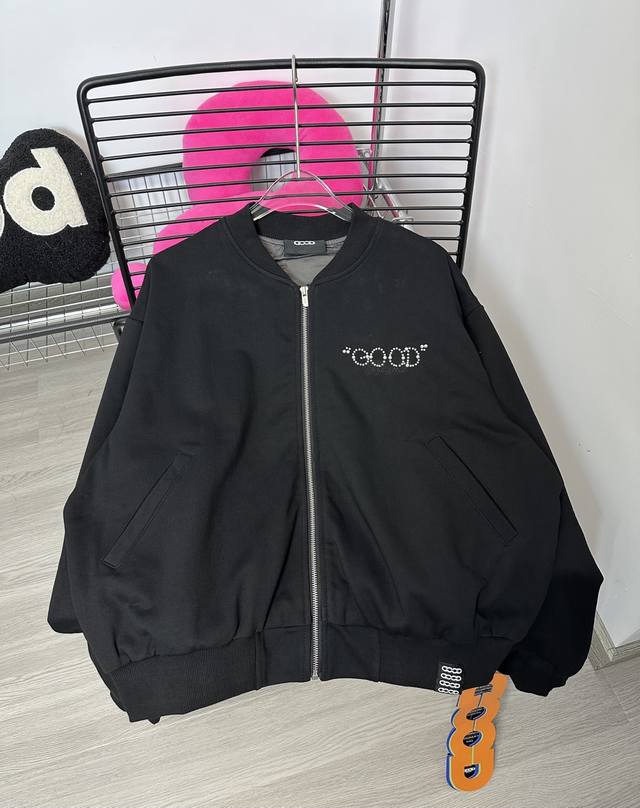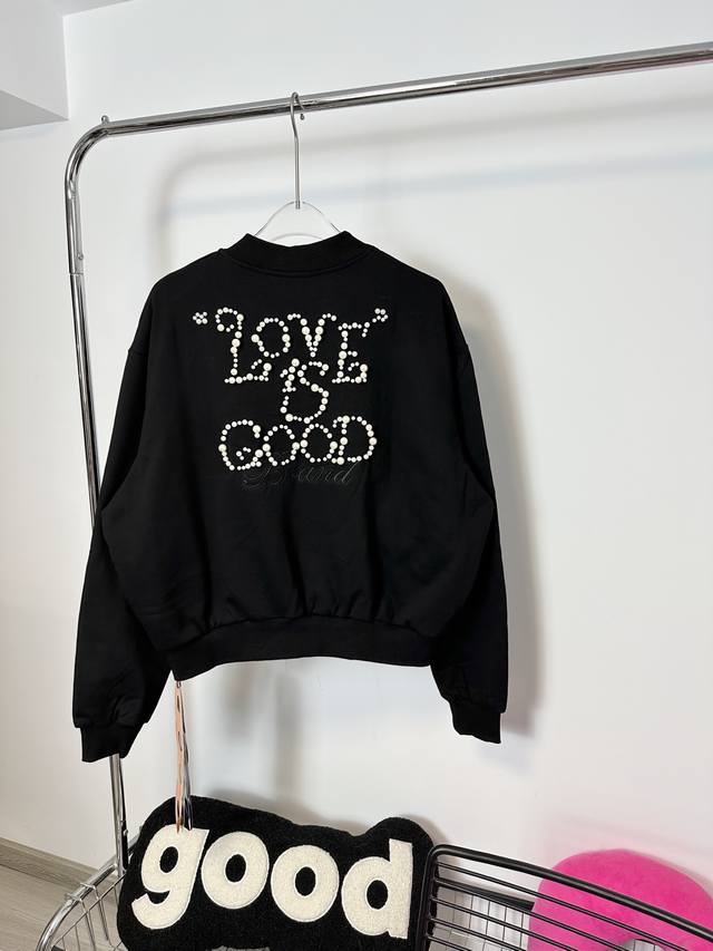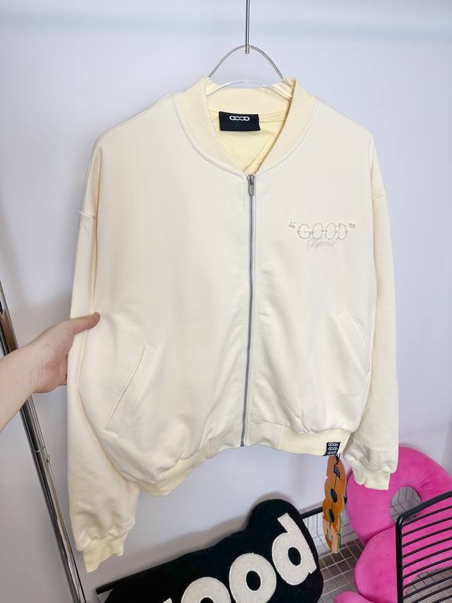 Goodbran pearl beaded slogan baseball jacket