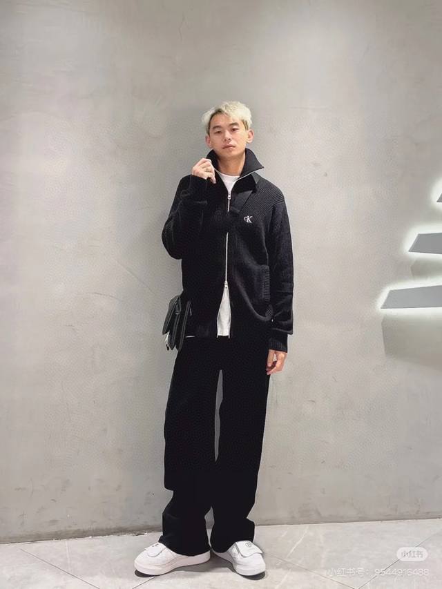 chest Ck small logo embroidery classic design overall made of wool knit weight 1000G around 3 anti-pilling wool material machine washable no pilling old flower fashionable design upper body recognition full revealing temperament fashion items essential as the first choice of autumn and winter jacket