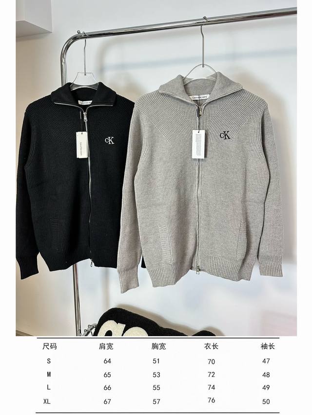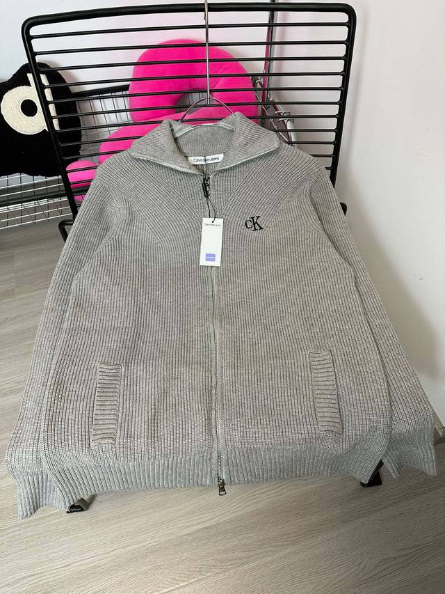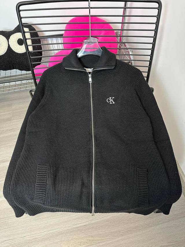 Ck chest embroidery stand collar knitted jacket Calvin Klein counter same style