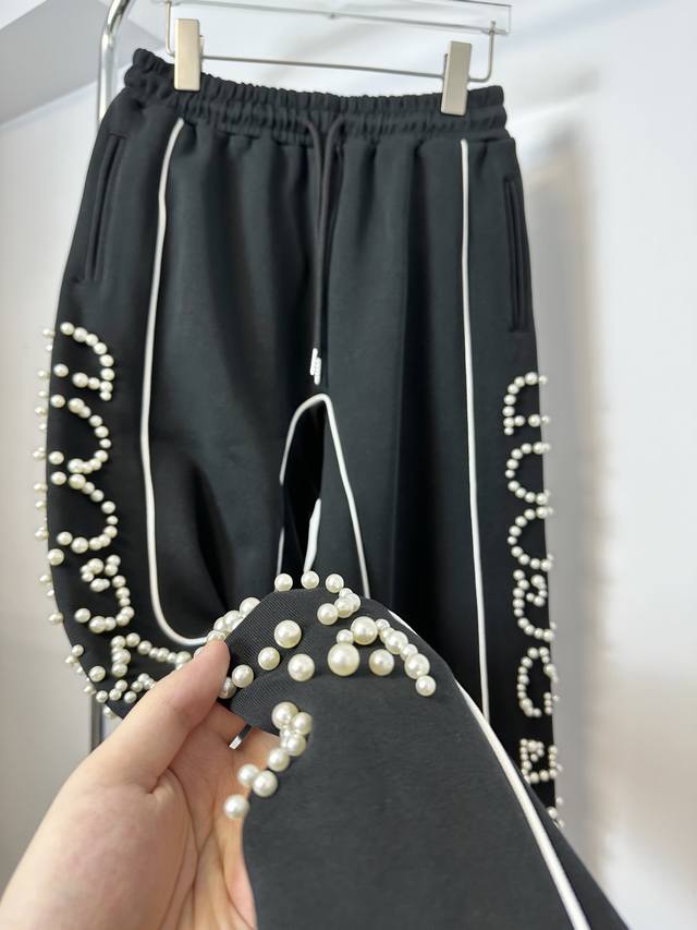 Style number: Hmy173# Good Pearl letter straight webbing sweatpants trousers un