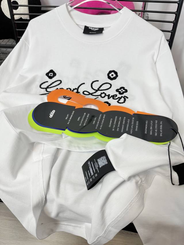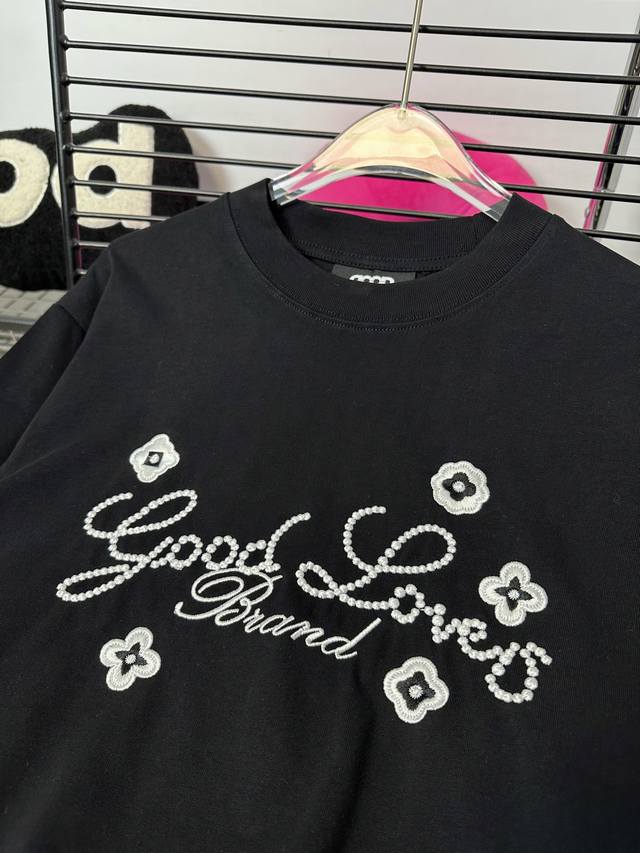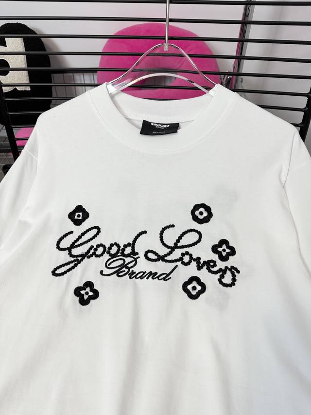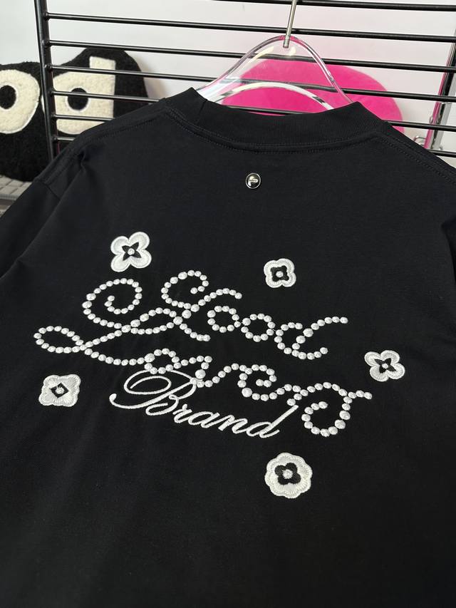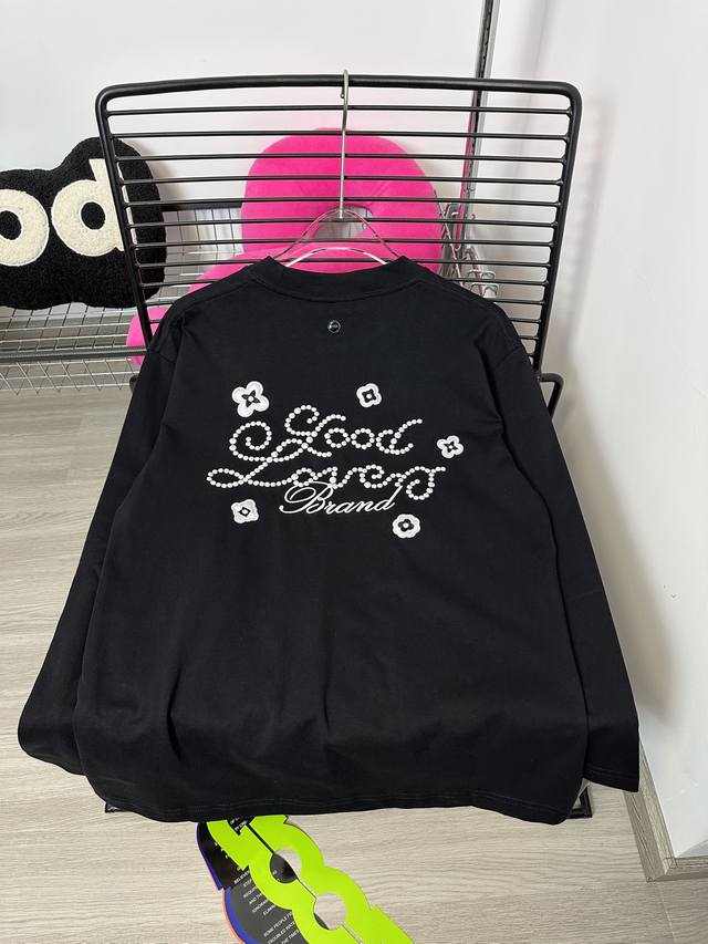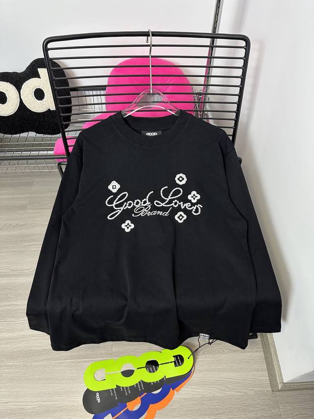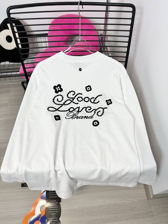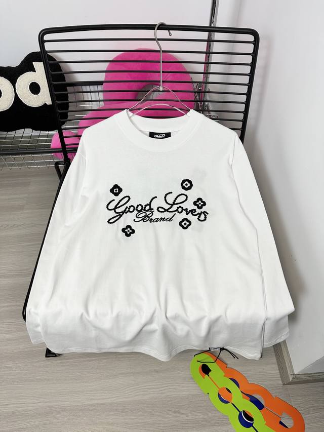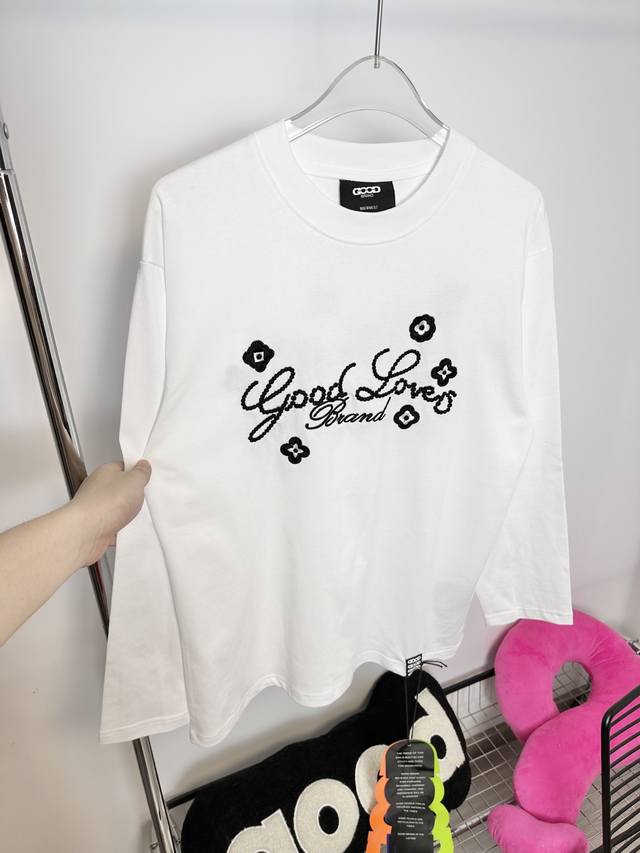 Good Brand small flower slogan light luxury fashion embroidery round neck long-sleeved base T-shirt