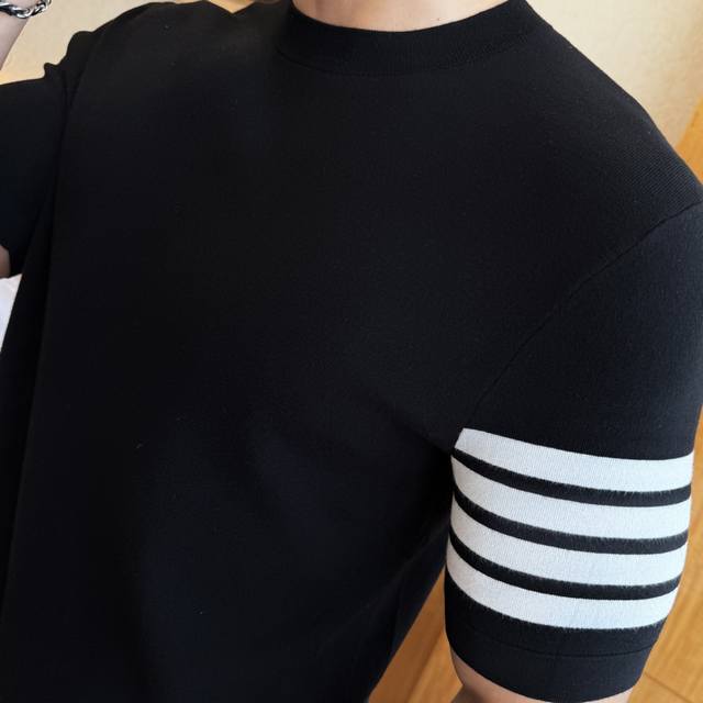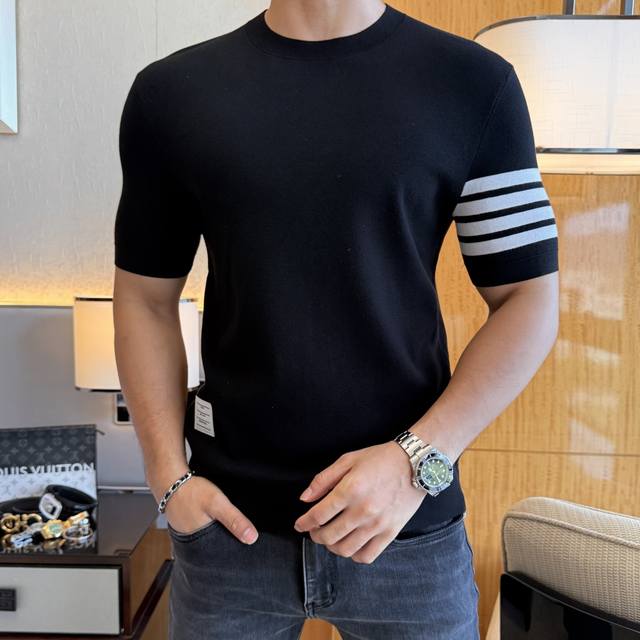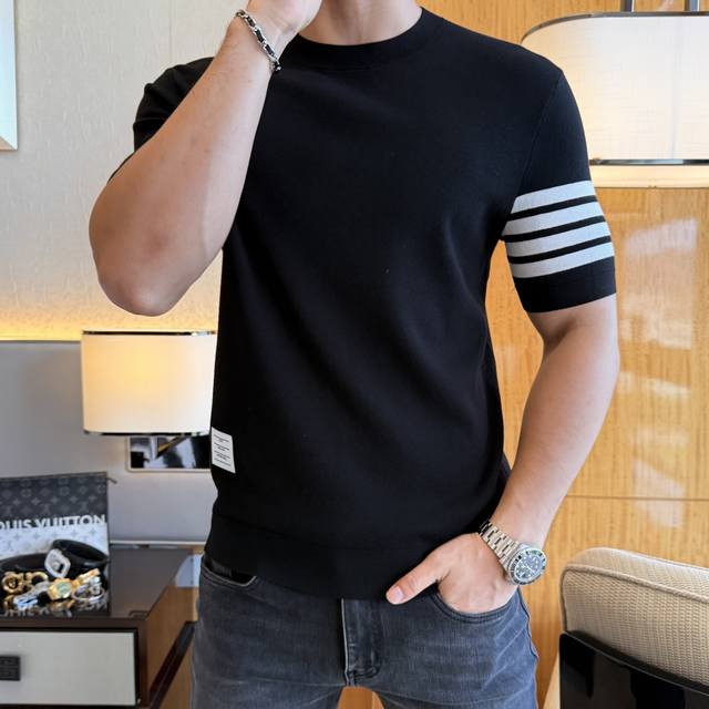 Tb -2025Ss Autumn and Winter Short-Sleeve Knitted Sweater Collection! A must-have for both casual and business outerwear. Made from premium worsted silk blended fabric, this sweater has a delicate feel and is comfortable and snug. The upper body shape is comfortable and warm, and the counter logo design is very unique. Don't miss it, my dear men! Sizes: M-3Xl