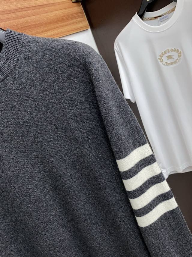 Tb 25 Latest Men's Wool Sweater, a simple and classic design. As a fashion "universal formula," the crew neck pairs seamlessly with any bottoms. Made from premium 100% wool, it's comfortable, skin-friendly, and breathable. The moment you put it on, you'll feel the softness and silkiness of a spring breeze, while its excellent breathability keeps your skin dry. Suitable for all face shapes, it easily flatters the neckline, showcasing a neat and sophisticated look. Every wardrobe needs a versatile T-shirt like this