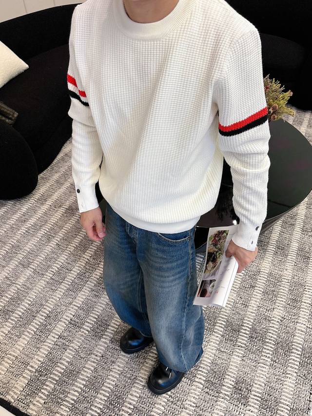 Tb Sweater, 2025 Fall/Winter Newest Collection, Top-Quality 1:1 Replica from Official Stores, Perfect Condition! Thickened Style, a Must-Have for Trendsetters! Savvy buyers, grab it now! Fabric: 10% Cashmere, 60% Wool, 30% Spandex. Sizes M-3XL.