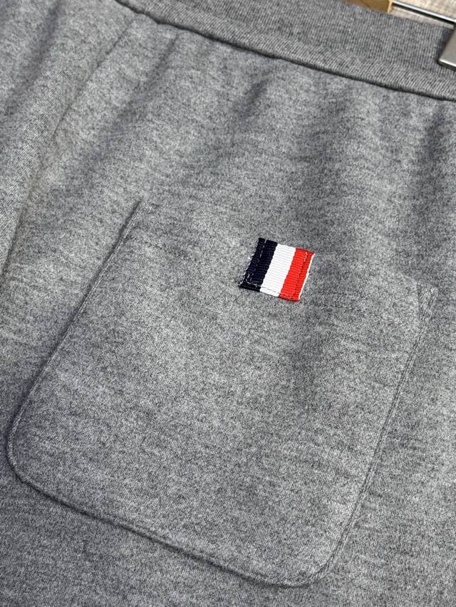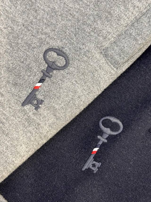 Tb's latest 2025 Fall/Winter men's cashmere sports pants with key logo embroidery. These traditional sweatpants are simple and versatile, perfect for everyone. Made of easy-to-care, these pants feature a creative key logo embroidered on the left pocket, complemented by classic red, white, and blue stripes. Adding to the iconic four-bar design on the left thigh, the contrasting color scheme creates a youthful, stylish, and sophisticated look. Highly recognizable by the brand, these pants look stylish and stylish, effortlessly at the forefront of the latest fashion trends. A must-have for the high-end man! These straight-leg pants feature an elastic drawstring waist and trendy wide-leg cuffs. Their clean, straight lines flatter and perfectly complement your legs, perfectly showcasing your proportions. Made to order with top luxury brands, these pants feature meticulous attention to detail. Utilizing a unique 3D wraparound tailoring technique, the waistband, lining binding, and overall fit are impeccable, creating a superb fit. Perfect for everyday commuting or casual wear.