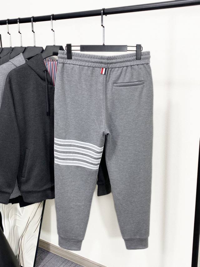 Tb's revamped and innovative take on sweatpants. Th*M Brow*E striped cotton nylon casual sports sweatpants remain a streetwear favorite, offering a classic look with a cutting-edge edge.