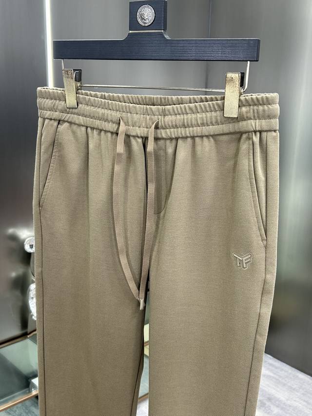 Tf 2025 Fall/Winter new slim straight-leg casual pants with a three-dimensional brand logo. High-end version, custom-made high-tech fabric with an ultra-soft feel. The elastic drawstring waistband provides breathability and comfort. Exquisite details and workmanship, along with brand design elements, embody high quality. Delicate and soft feel! The casual cut features a flat-cut, slightly wide hem for a superb fit! Sizes: Black 30-40, Brown 30-38