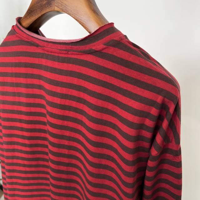 The double-layer collar design is super layered, and the raw-edge details are a big plus, lazy and casual. The stripes are also classic and slimming, full of retro feel.