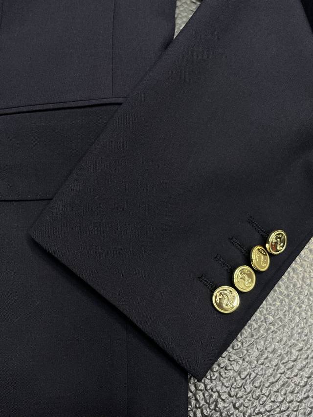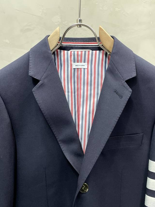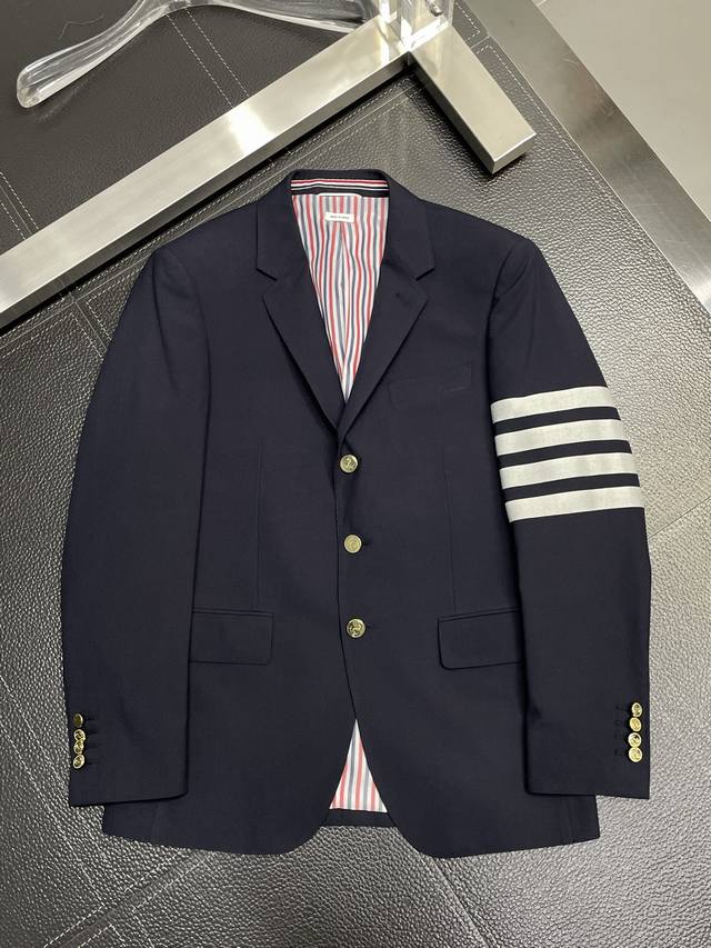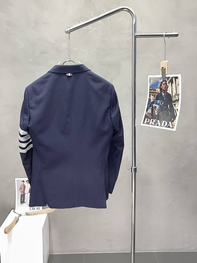 Thom Browne exclusive new blazer, simple and casual, made from imported polyester fabric. Breathable, soft, and warm, it has a straight, drapey feel. The entire piece features neat, even stitching, and all hardware and accessories are custom-made. The logo-embellished accessories are premium quality. This fabric is custom-woven, and you won't find quality products from regular manufacturers anywhere else. There's nothing to complain about. This jacket is a must-have and highly practical. Sizes: M-3Xl