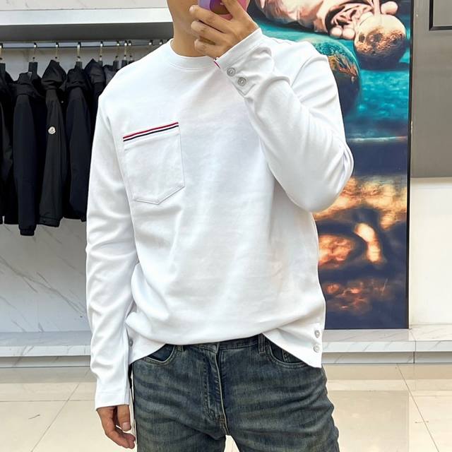 Thom Browne , high-quality 25S autumn and winter men's hoodie sweatshirt. Classic red, white and black stripes: The edge of the left chest pocket, the inside of the collar and the cuffs are decorated with the brand's iconic red and black stripes, highlighting the details in simplicity.