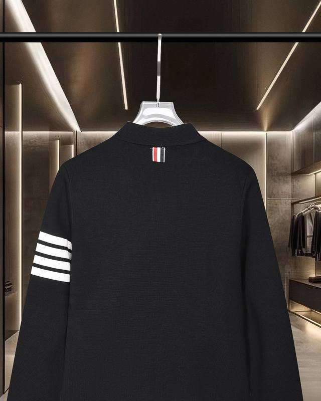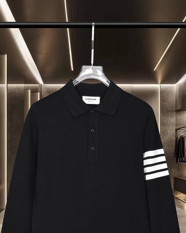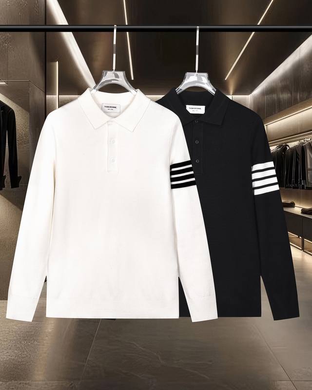 Thom Browne Tb basic classic colorblock four-bar knitted lapel polo sweater. 2025Fw official website new original fabric. High-end version of the same imported wool knit fabric. Custom-made fabric for breathability and comfort. Exquisitely crafted with impeccable detailing, custom-engraved buttons with logos, and all three labels. Brand elements and design concepts reflect high quality. Soft and smooth feel! A casual cut with a great fit. Colors: black and white. Sizes: M-Xxl.