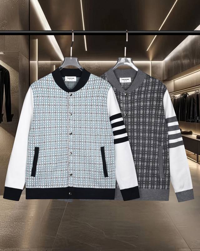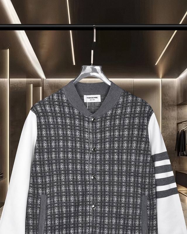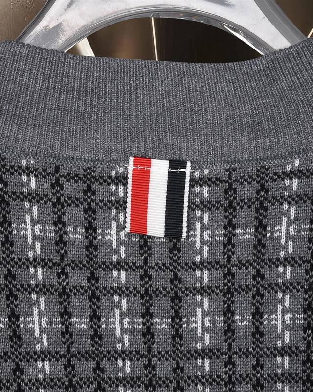 Thom Browne Tb basic classic colorblock metal button four-bar knitted sweater ja