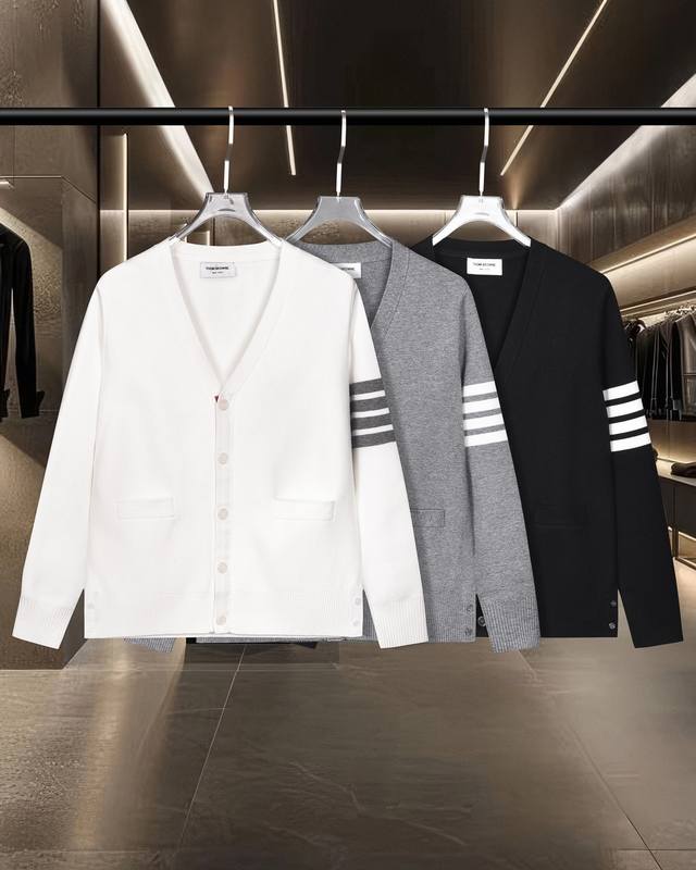 Thom Browne Tb basic classic colorblock zippered four-bar knitted sweater jacket. 2025Fw official website new original fabric. High-end version of the same imported wool blend. Custom-made fabric for breathability and comfort. Exquisitely crafted with impeccable detailing, custom logo-engraved buttons, and all three labels are included. Brand elements and design concepts reflect high quality. It feels delicate and soft! It features a casual cut and a great fit. Colors: black, white, and gray. Sizes: M-Xxl.