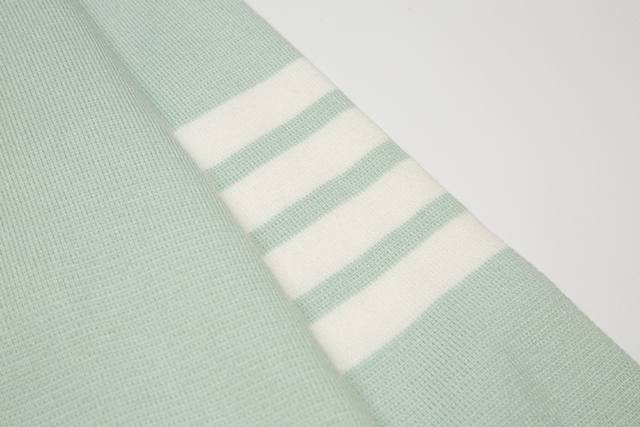 . This classic Tb cardigan features four stripes, a classic style worn year-round. It's made from high-quality, custom-dyed cotton yarn containing wool, making it soft and skin-friendly. The double-layer knit is very thick and feels incredibly good. You can feel its texture right in your hand. It's versatile and can be worn with anything. It's perfect for formal occasions and work, even with a coat! Pair it with jeans or a Tb pleated skirt for a sophisticated, youthful, preppy look!