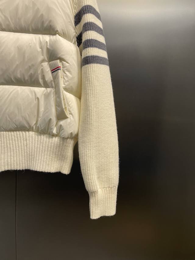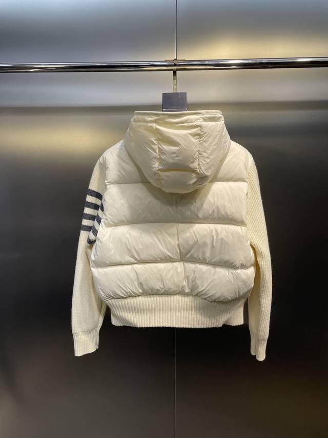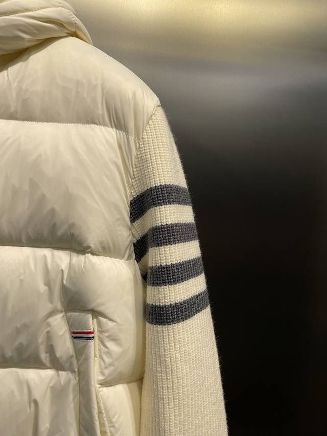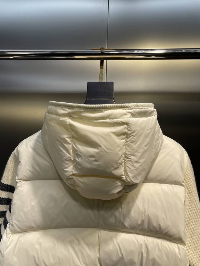 The entire body of the jacket adopts horizontal pressing technology, and the upper body is not bloated at all. The sleeves and hood are made of knitted patchwork.