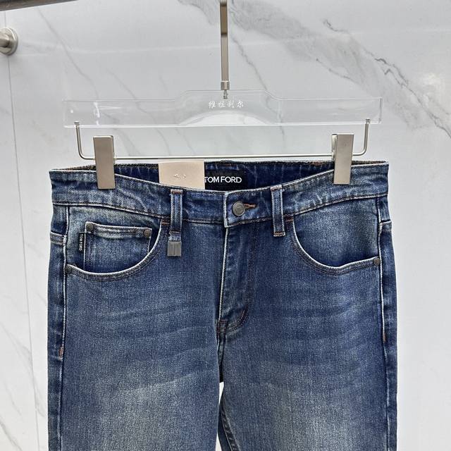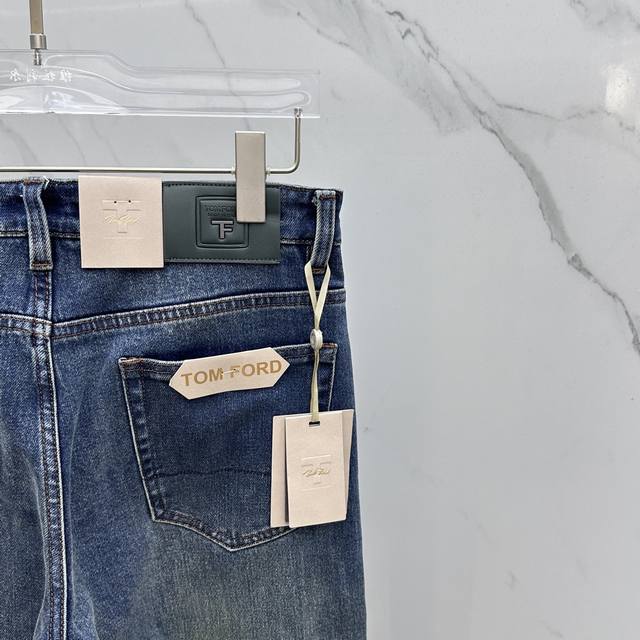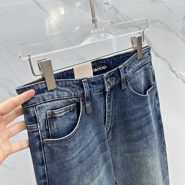 Tom Ford high-end custom jeans, the latest 2025 early spring jeans are available at the counter at the same time. Original custom replicas, custom-made hardware and accessories, original quality imported solid-color denim fabric, heavily washed, fine workmanship and fine stitching, perfect for the body! Featured item