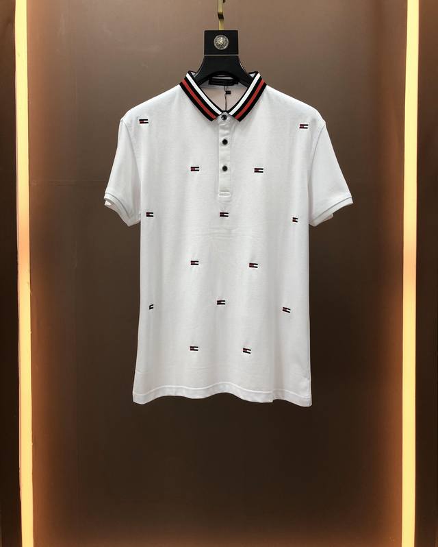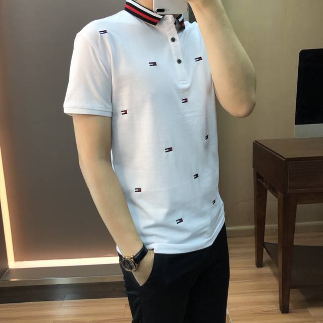 Tommy. New summer collection from the premium ready-to-wear department store. This business-casual lapel short-sleeved T-shirt features stylish embroidery. Made from heavyweight mercerized cotton, it's soft and refined, offering a comfortable fit. The exquisite medallion-style design features a simple, high-quality polo collar, which is stylish and elegant, and the overall craftsmanship and stitching are impeccable. This lapel-style piece is sure to add a touch of elegance to the urban fashionista, adding a touch of gentlemanly flair! Sizes: M-3Xl