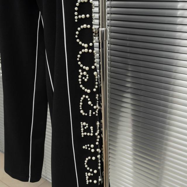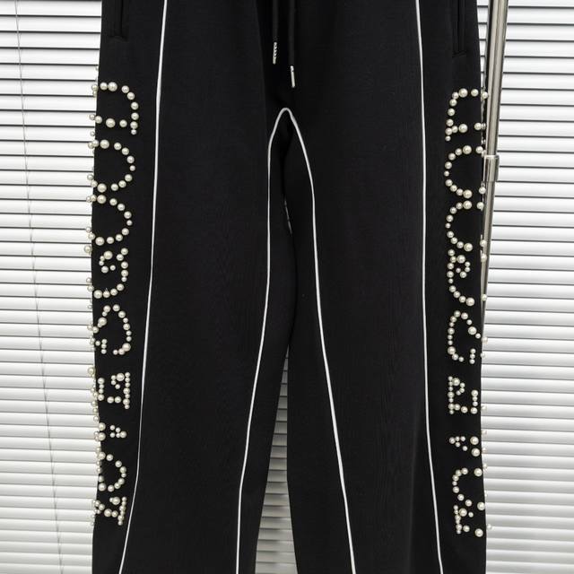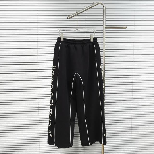 Style: Good hand-made custom pearl ribbon pure cotton long wide-leg sweatpants