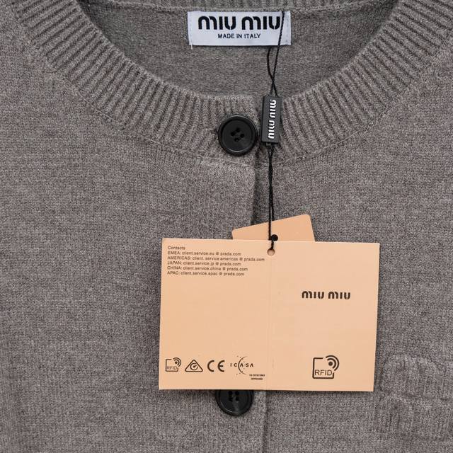 Style: Miu Miu Miumiu knitted patch logo cardigan jacket