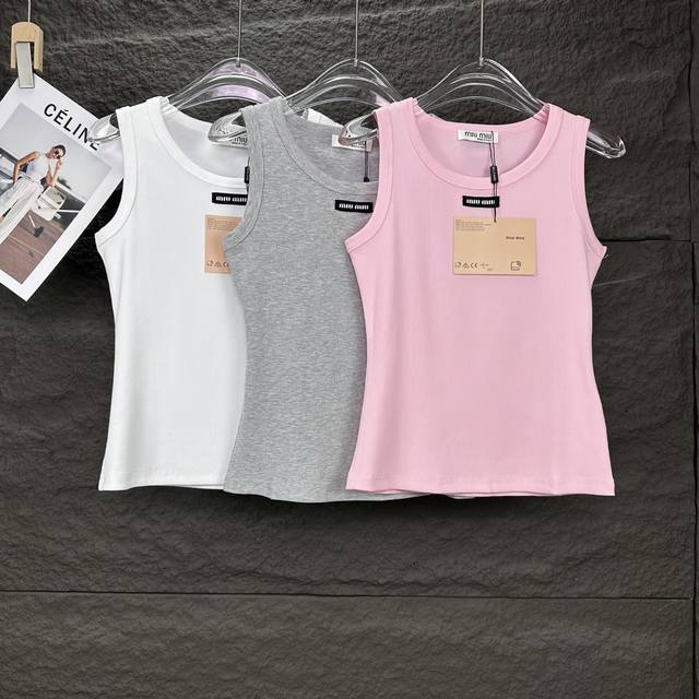 Top versionMiu Miu 2025 new embroidered patch letter women's vestHigh versionHig