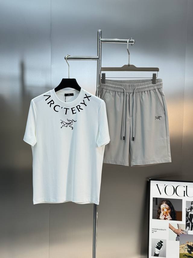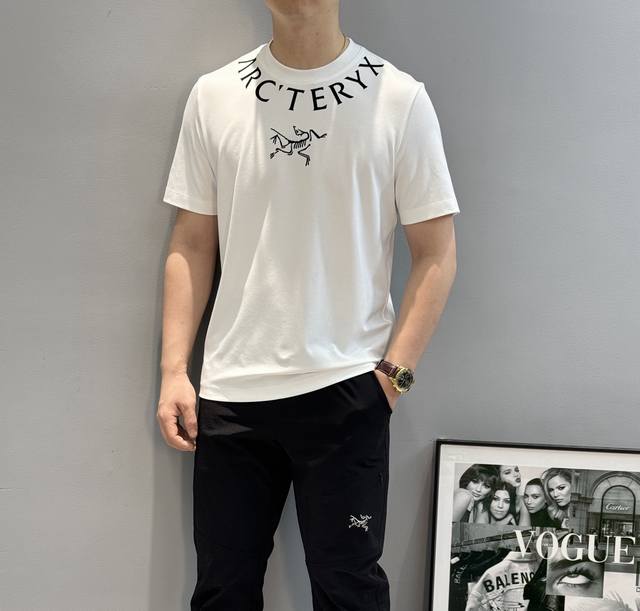 Tops and pants Arc'tery* 24S summer mercerized short sleeves.. 190G mercerized cotton fabric is preferred, the cutting process is in place without any drag, the upper body is absolutely perfect! The brand-new chest graphic three-dimensional embossing. The neckline is matched with brand letter heat transfer. The new element style is simple and advanced! Color: black. White. Size: M-4Xl slim fit! 175-145 catties recommended Xl