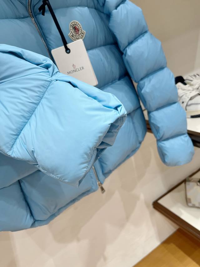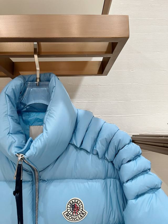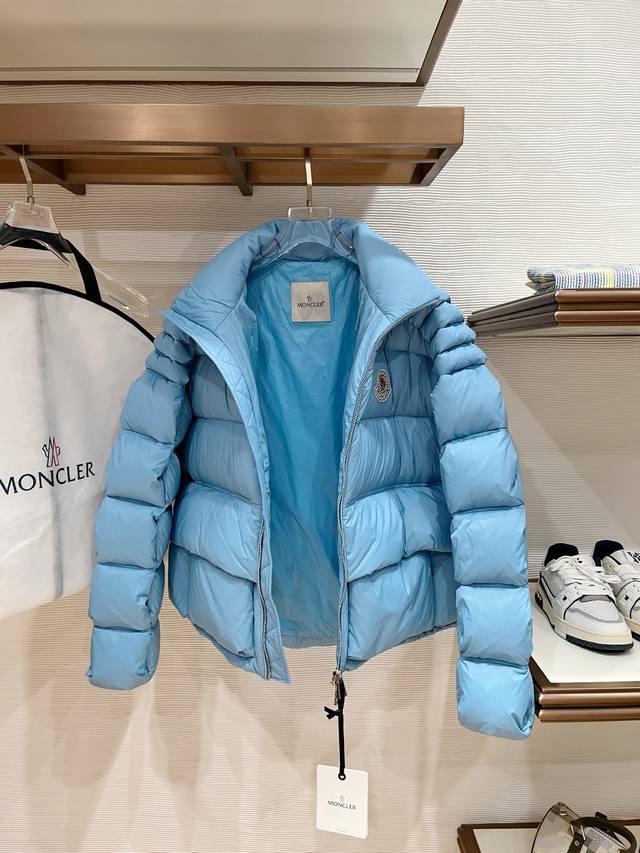 Top-tier limited edition Mo, latest hot-selling stand-up collar down jacket with large logo, embossed filling, 95% white goose down, super full fill, perfect fit, unbeatable hardware details. In stock. Sizes: 0-3.